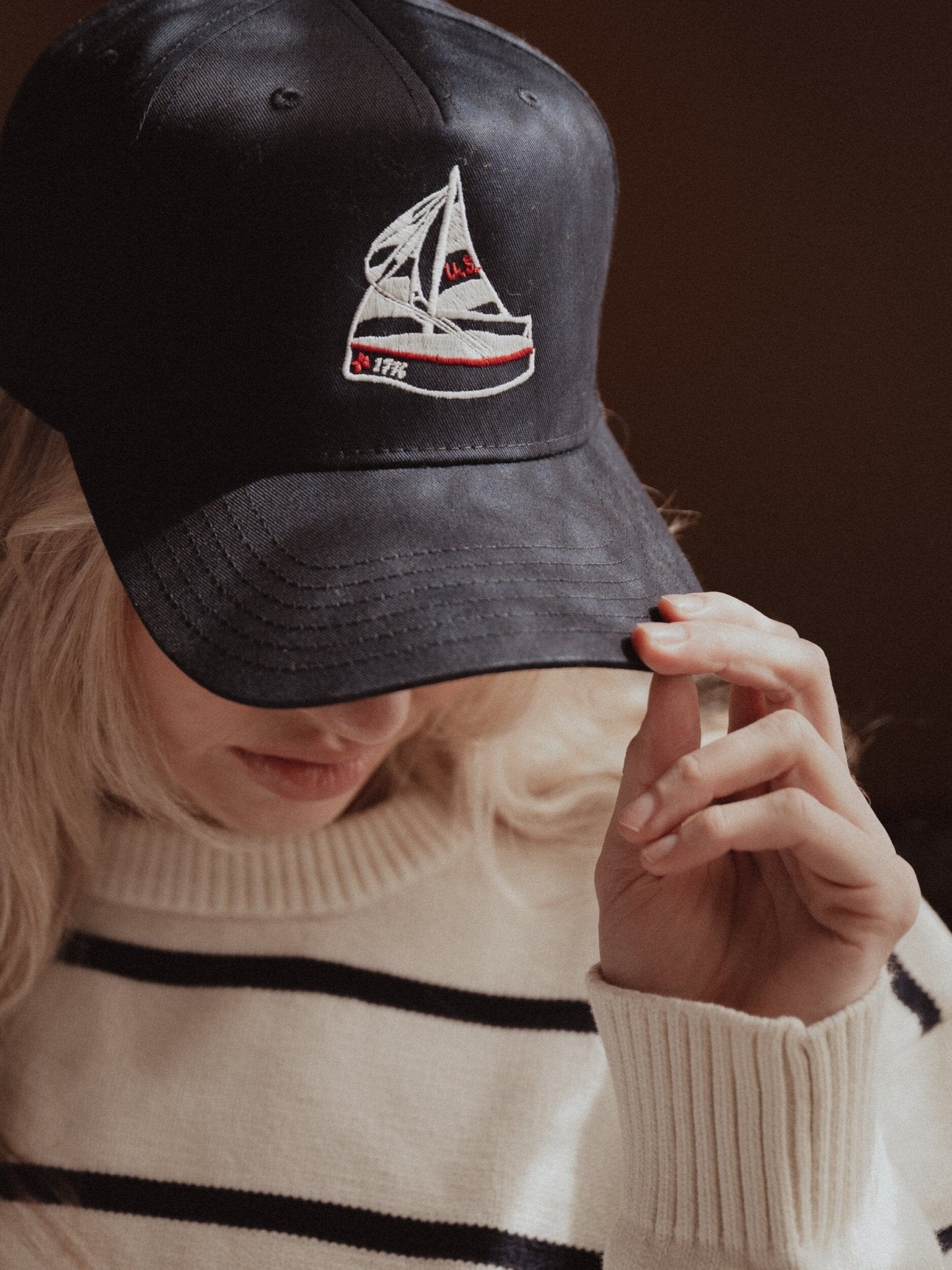 1776 USA Sailboat Navy Embroidered Hat