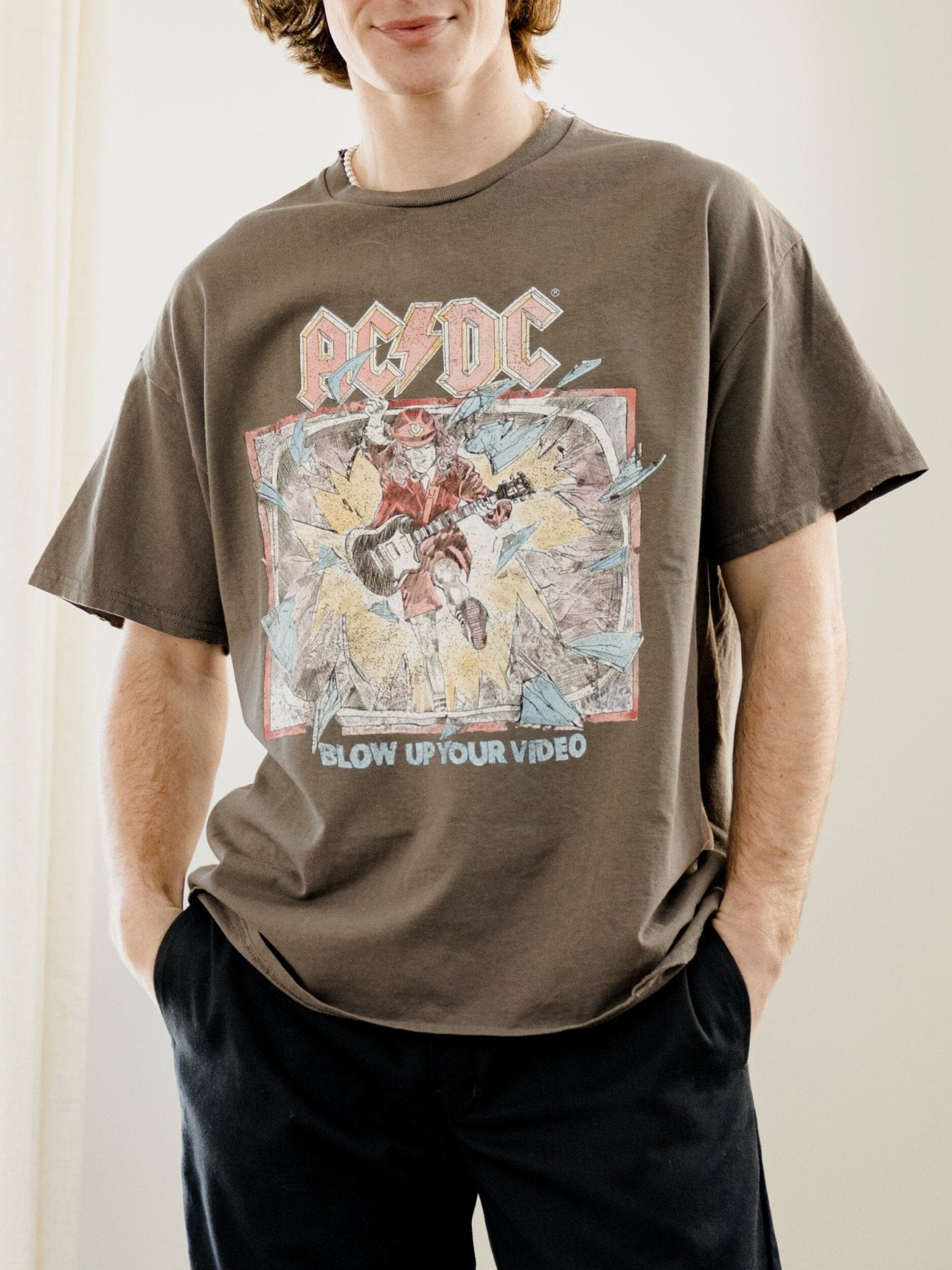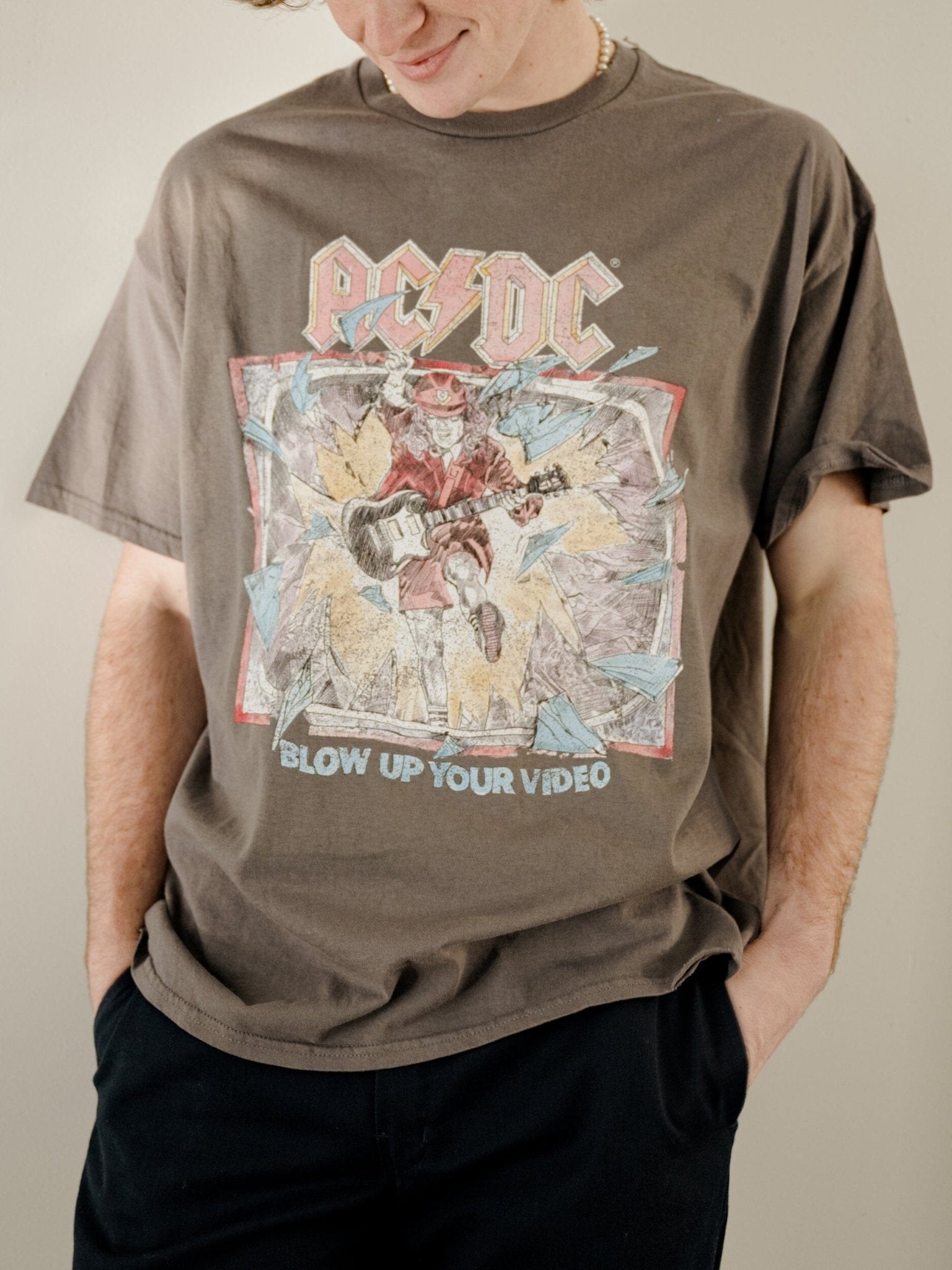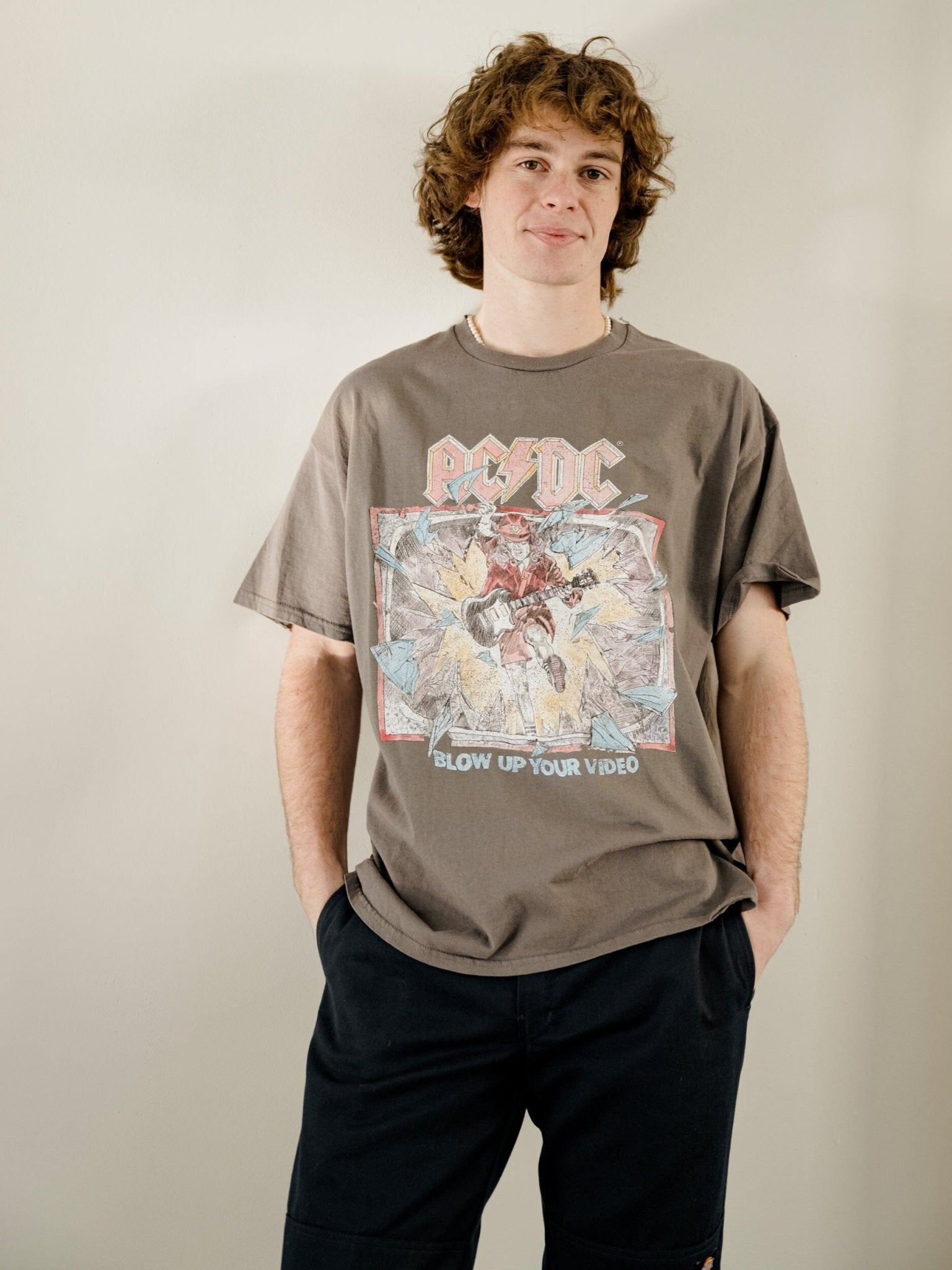 ACDC Blow Up Video Charcoal Thrifted Distressed Tee