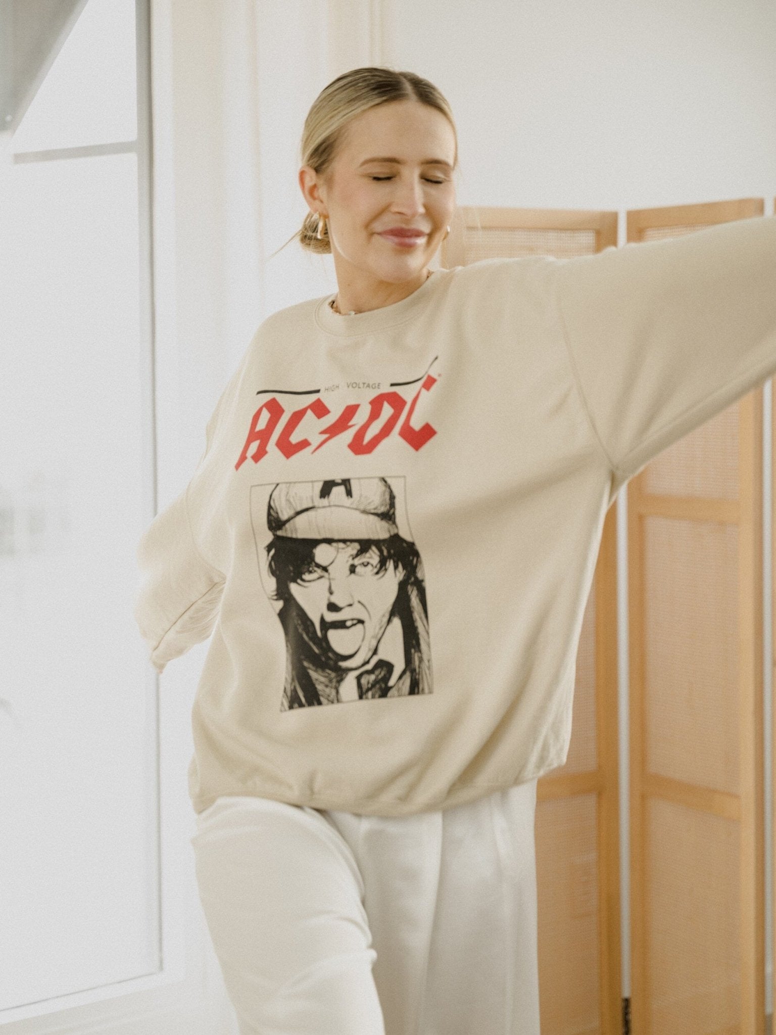 ACDC High Voltage Sketch Sand Thrifted Sweatshirt