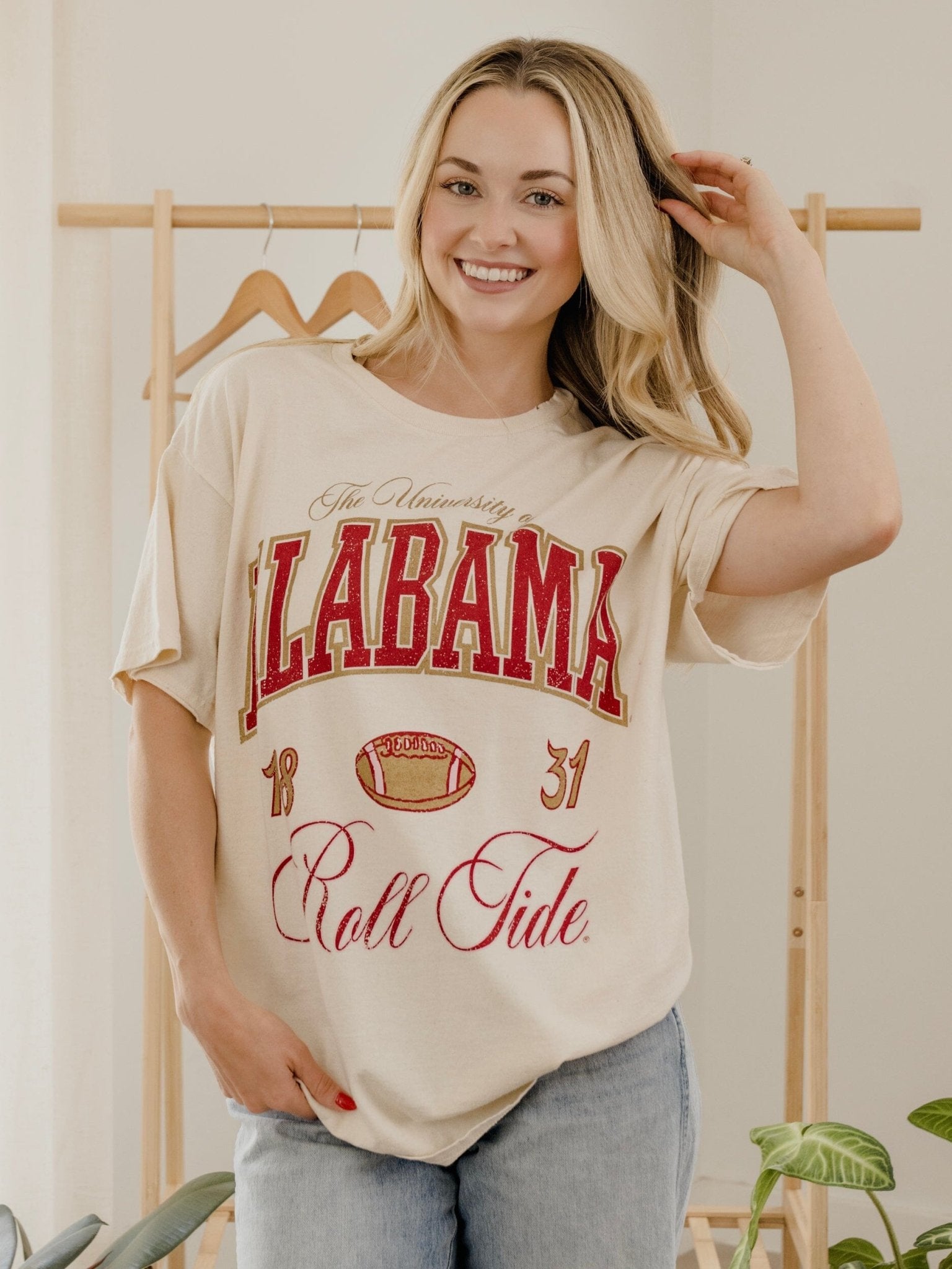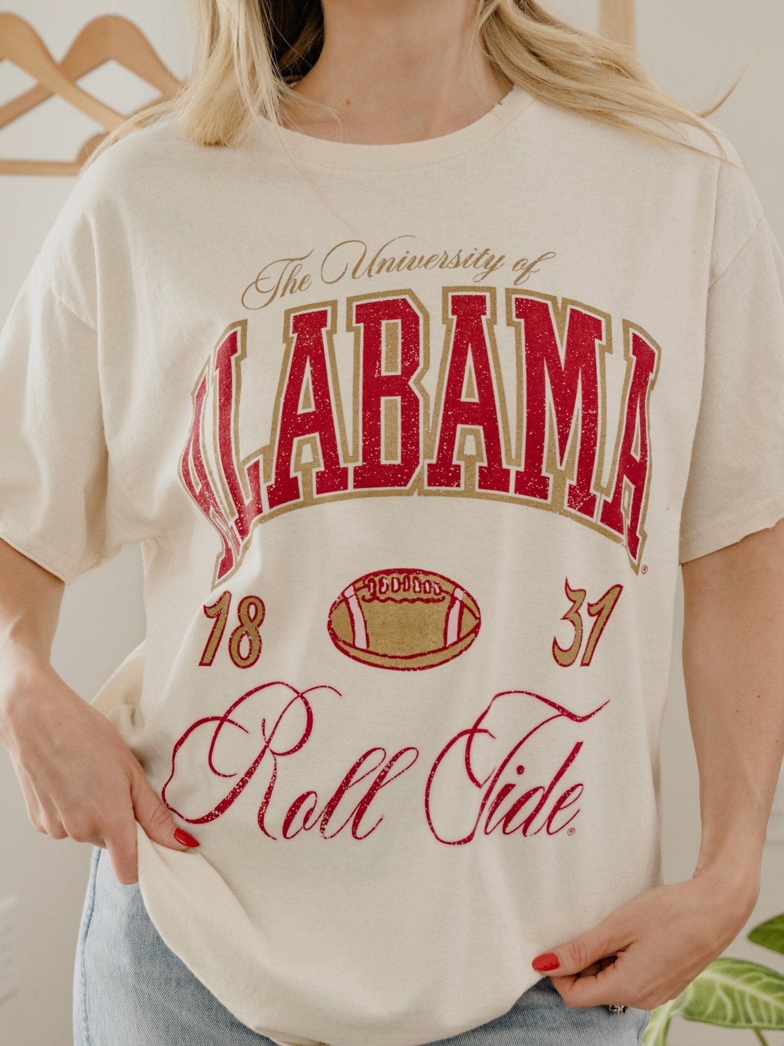 Alabama Crimson Tide Wave Arch Off White Thrifted Tee