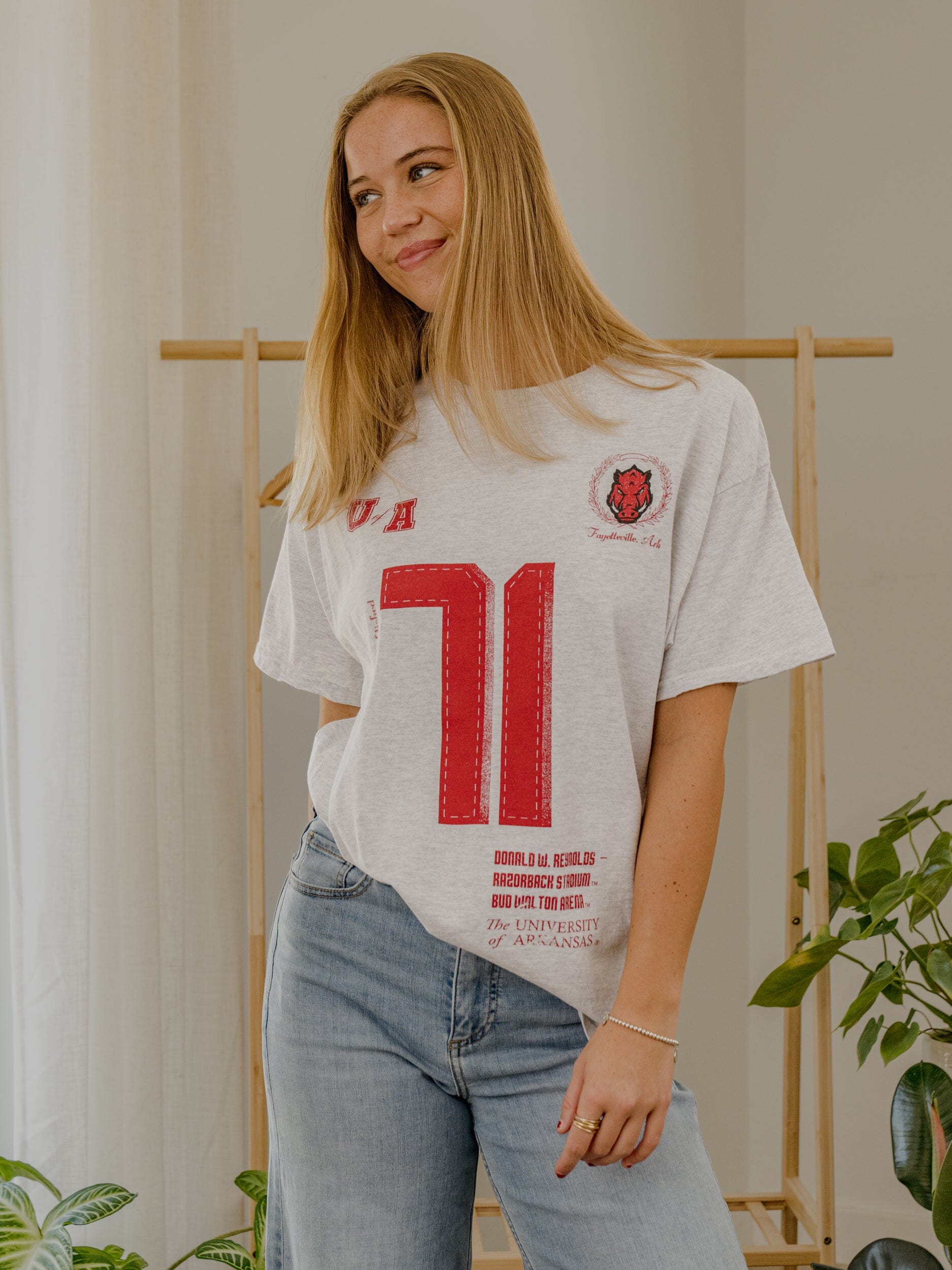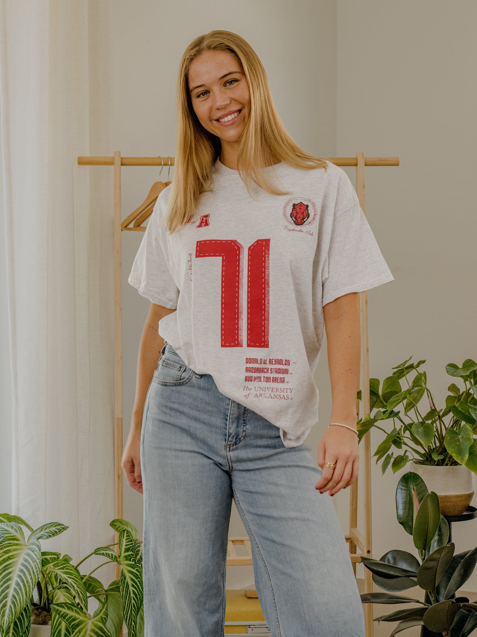 Arkansas Razorbacks Crest Stamp Ash Gray Thrifted Tee