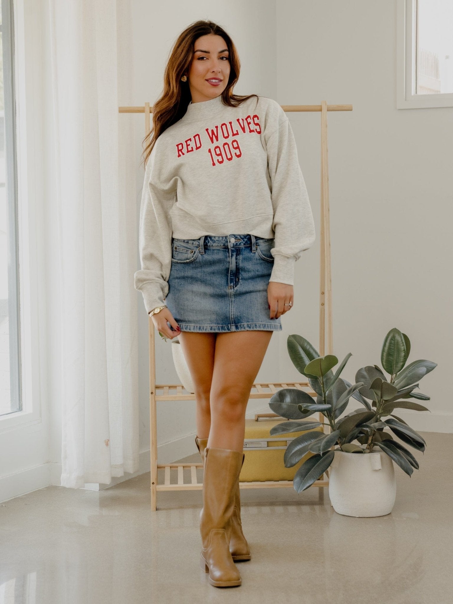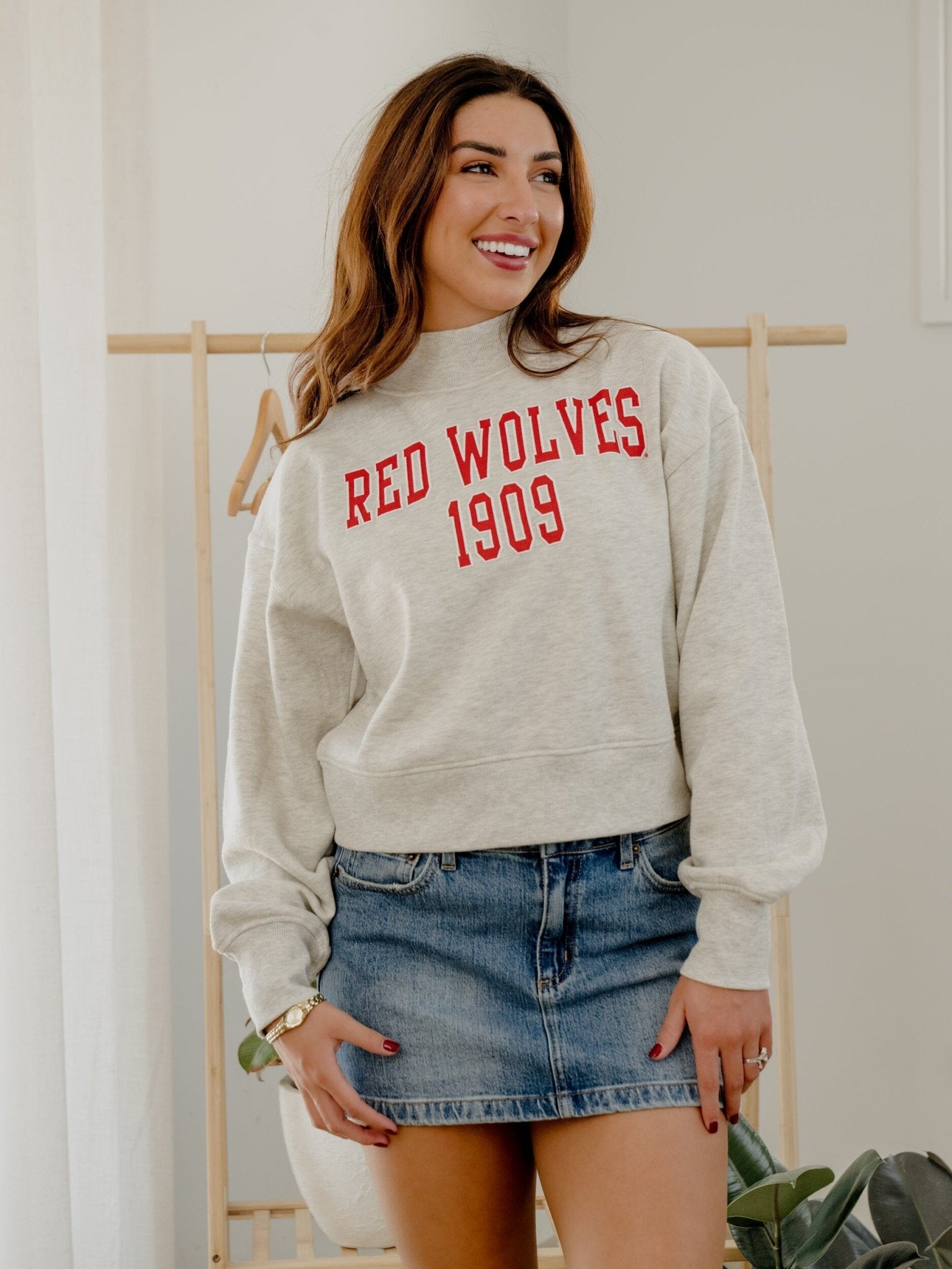 ASU Red Wolves College Block Puff Ink Gray Mock Neck Hi-Dive Sweatshirt
