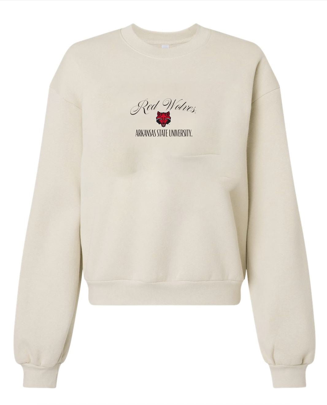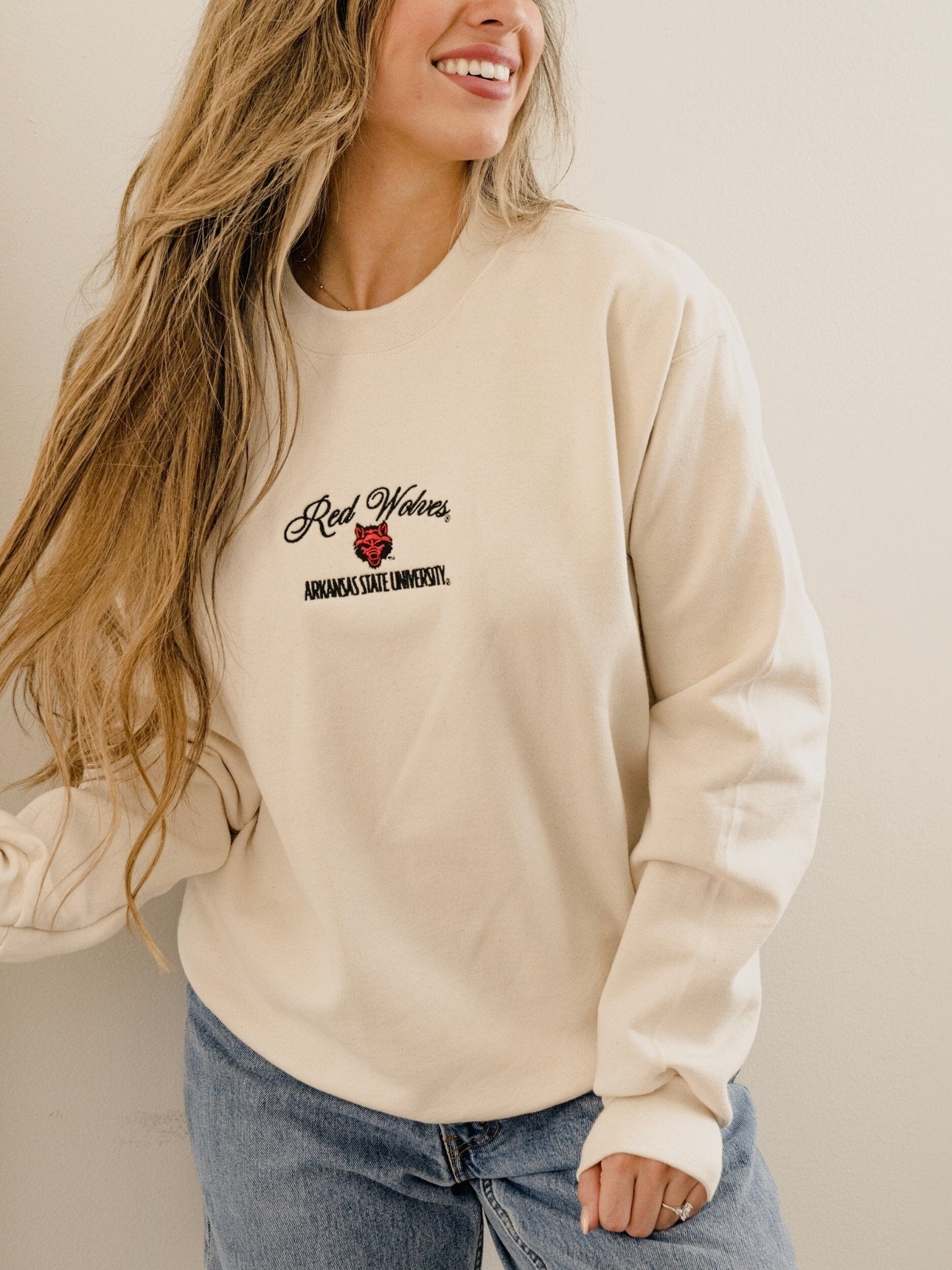ASU Red Wolves Embroidered Script Cream Sweatshirt