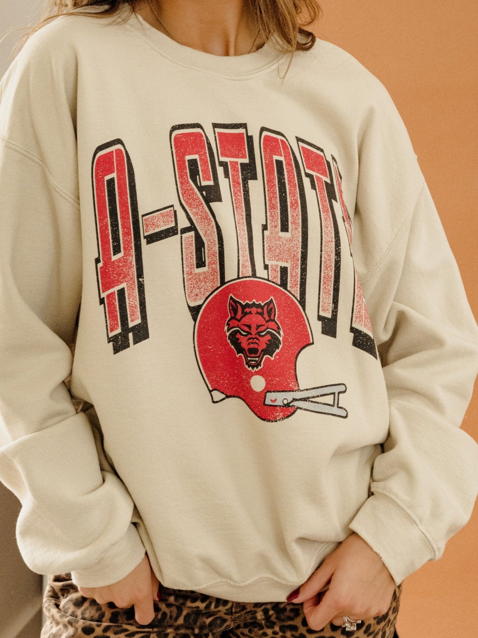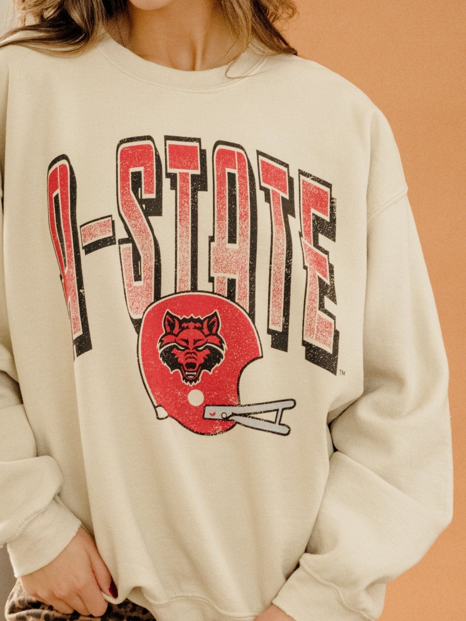ASU Red Wolves Helmet Fade Sand Thrifted Sweatshirt