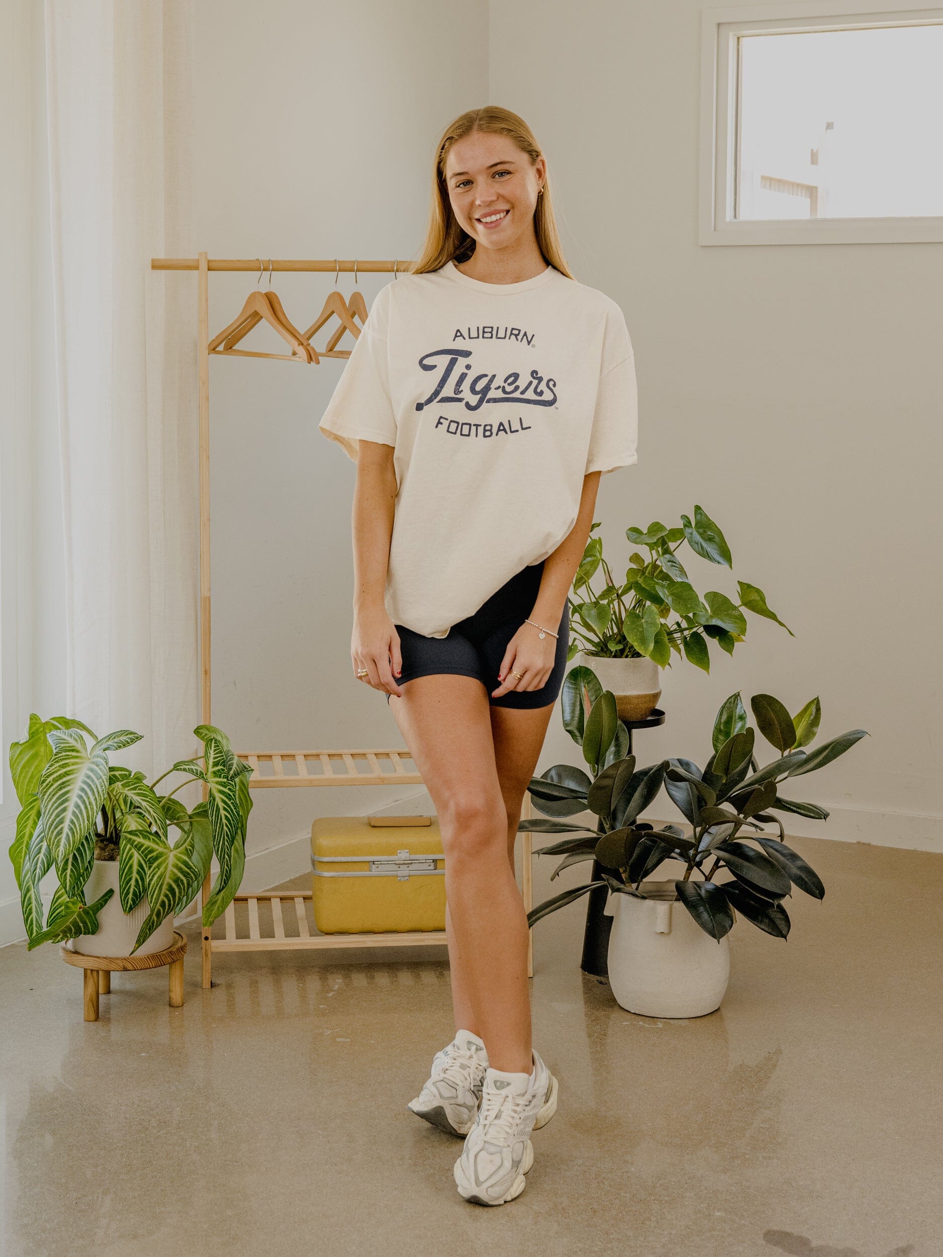 Auburn Tigers Football Stencil Off White Thrifted Tee