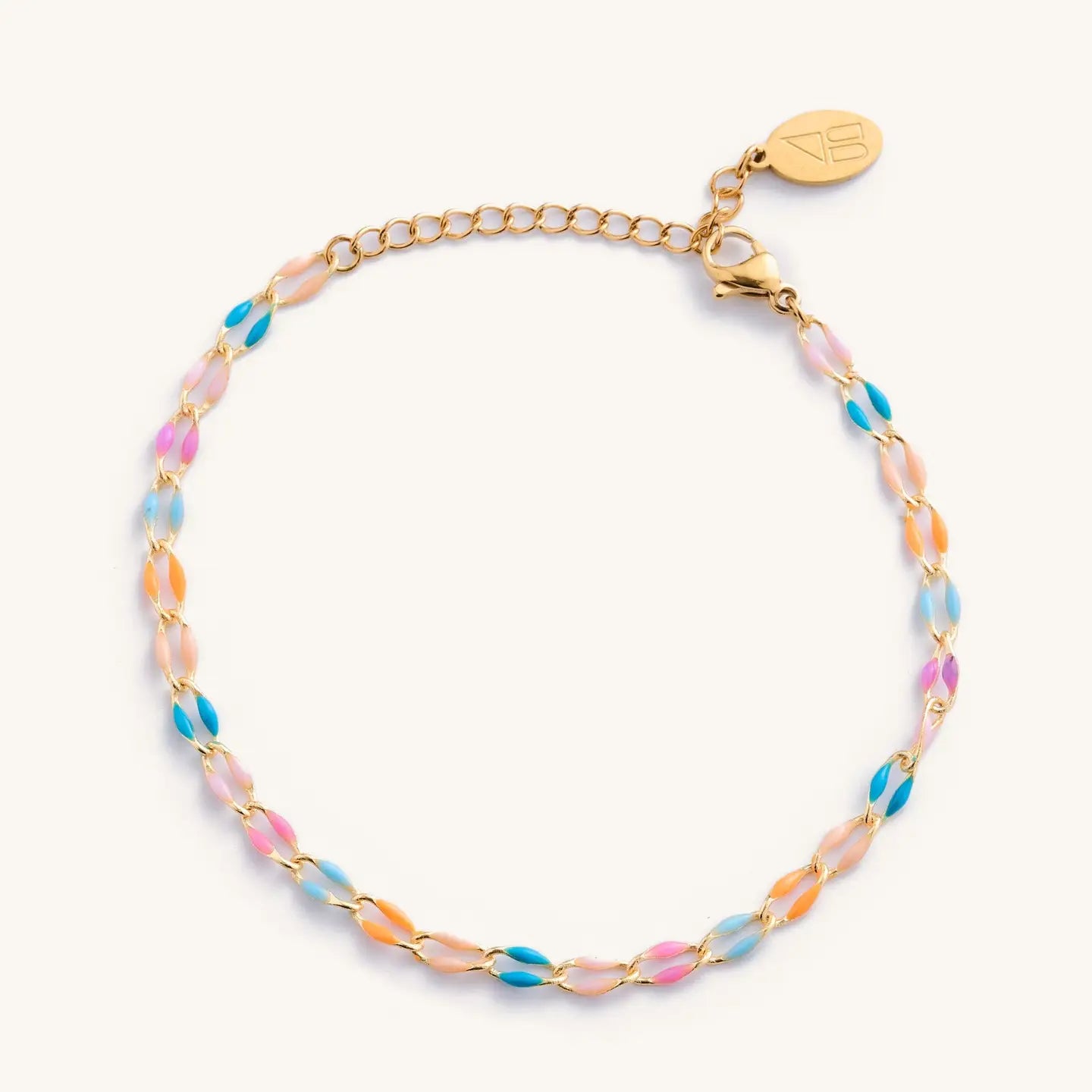 This chain bracelet is such a popular item. You can't go wrong with this fun piece! * Waterproof Gold with acrylic overlay * 6 inches with 1.5 inch extender and logo charm.