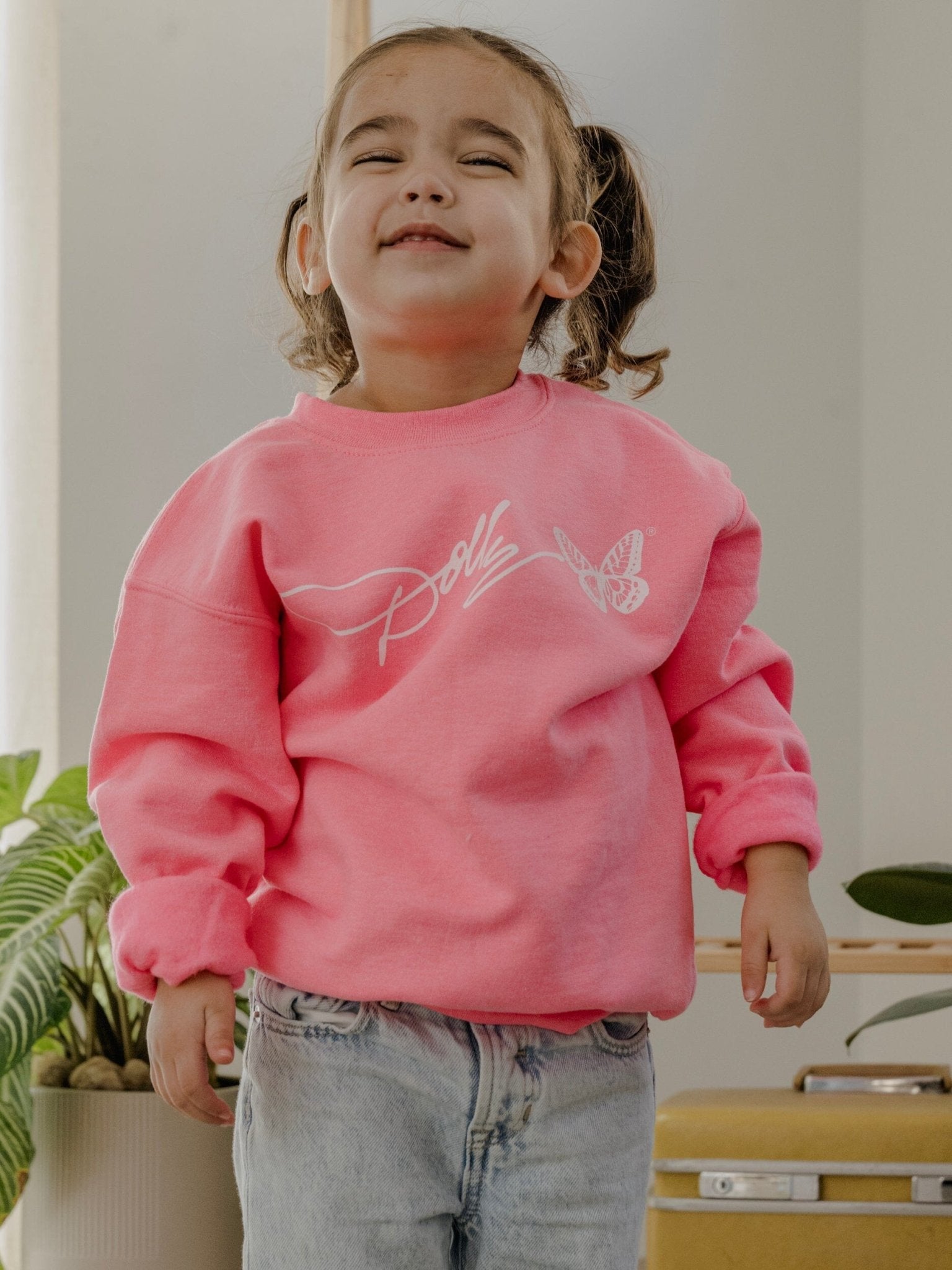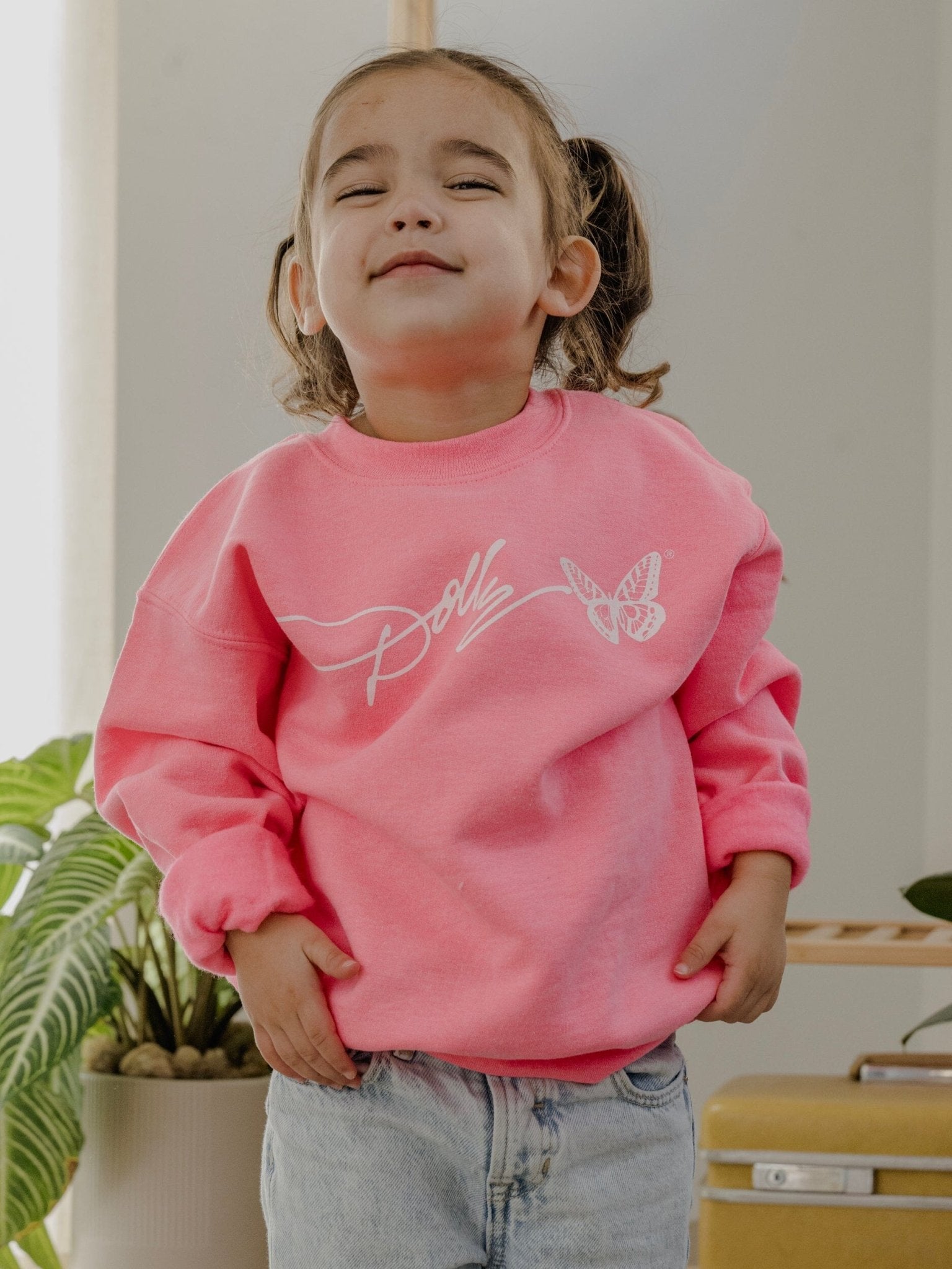 Children's Dolly Parton Signature Script Butterfly Dark Pink Sweatshirt