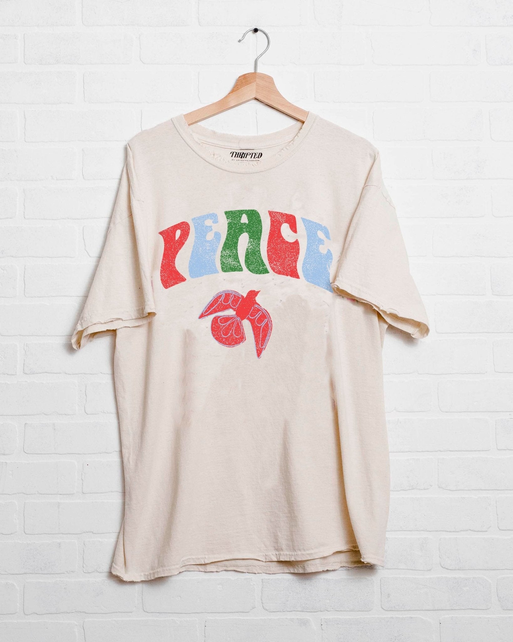 Colorful Peace Dove Off White Thrifted Tee