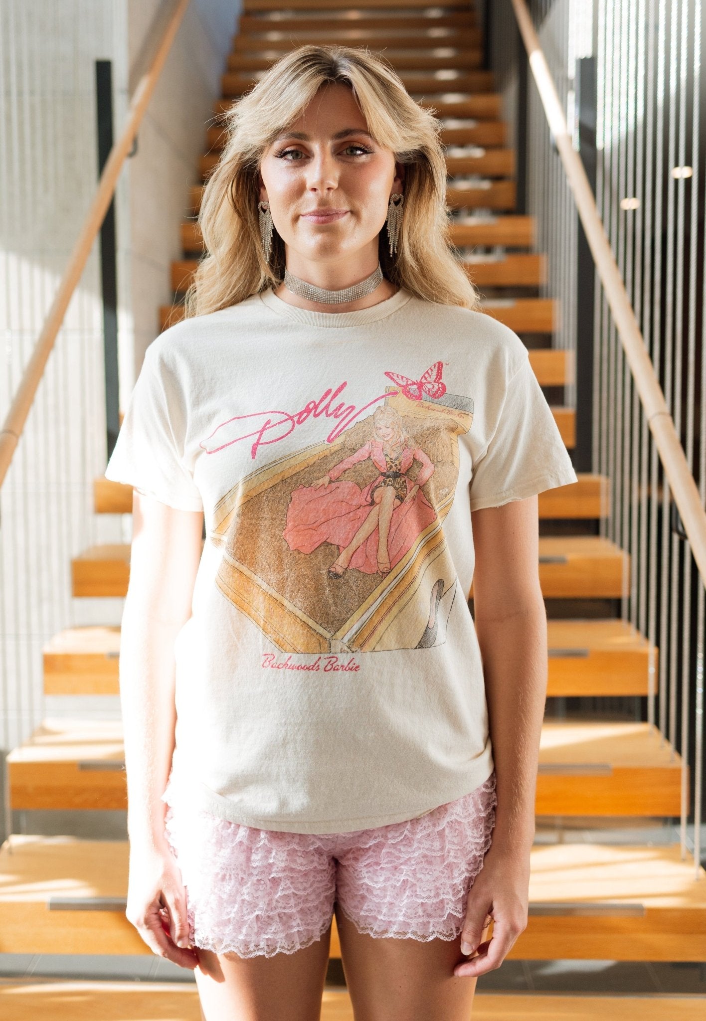 Dolly Parton Backwoods Barbie Off White Thrifted Distressed Tee