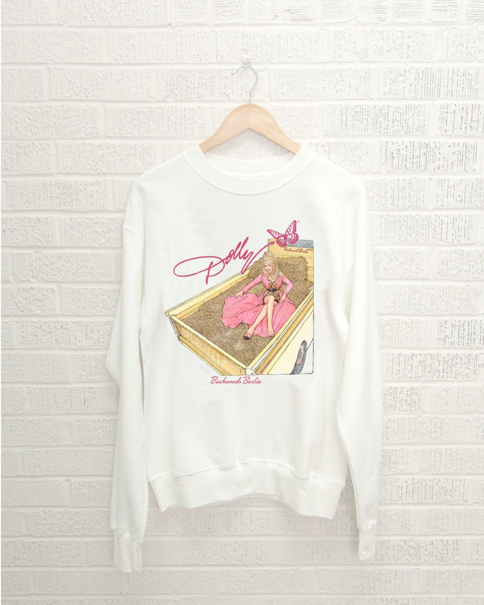 Dolly Parton Backwoods Barbie White Thrifted Sweatshirt
