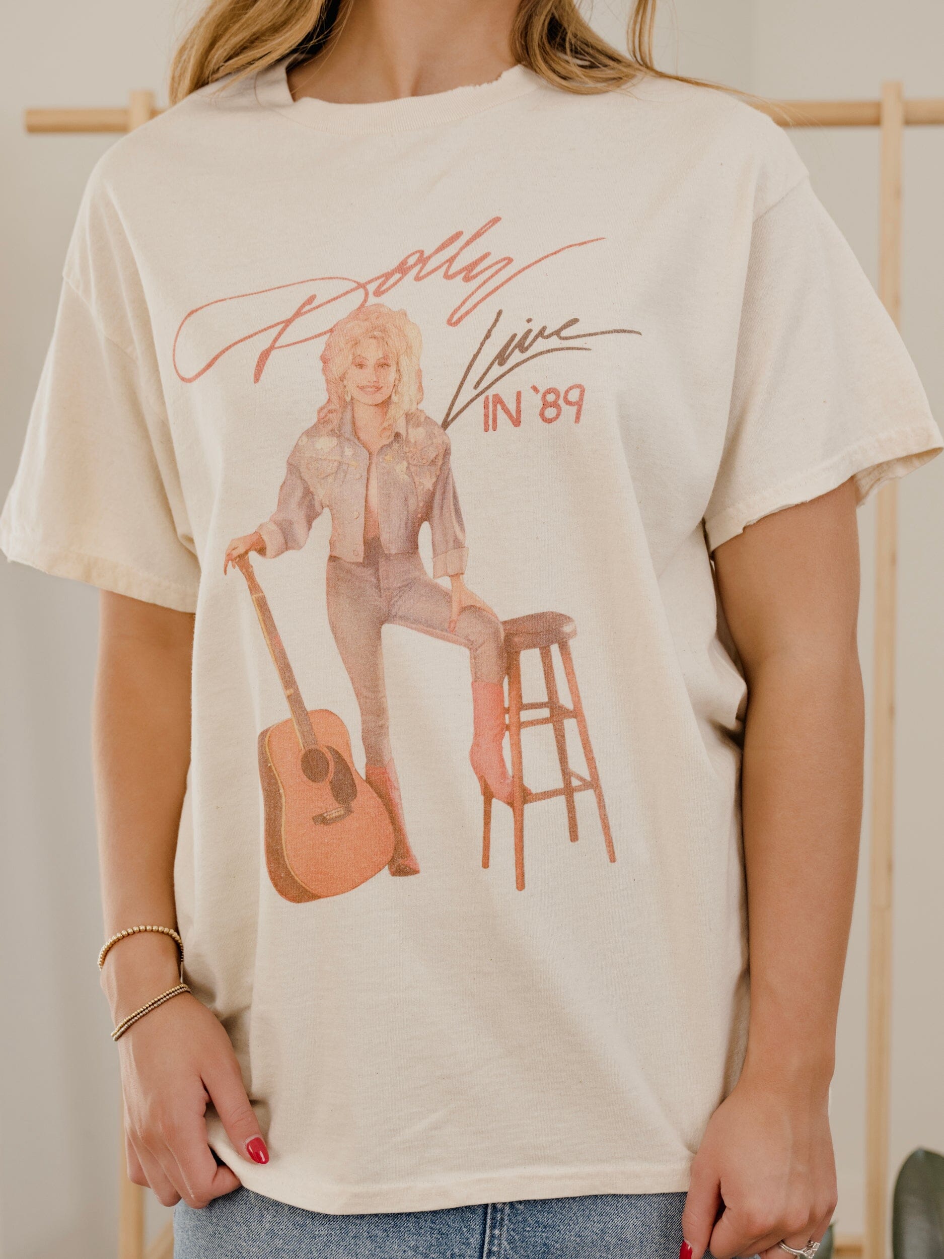 Dolly Parton Live in '89 Off White Thrifted Distressed Tee