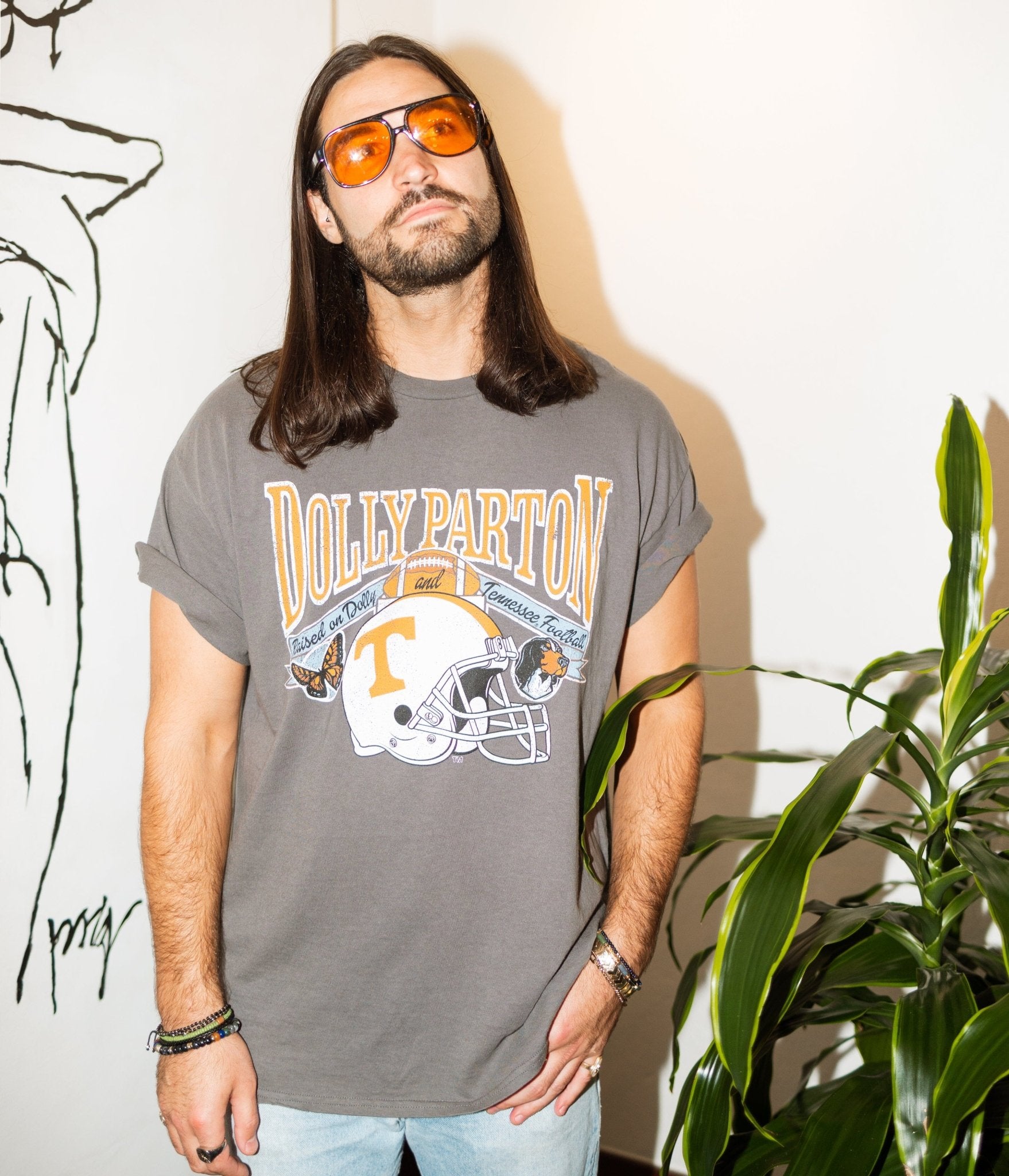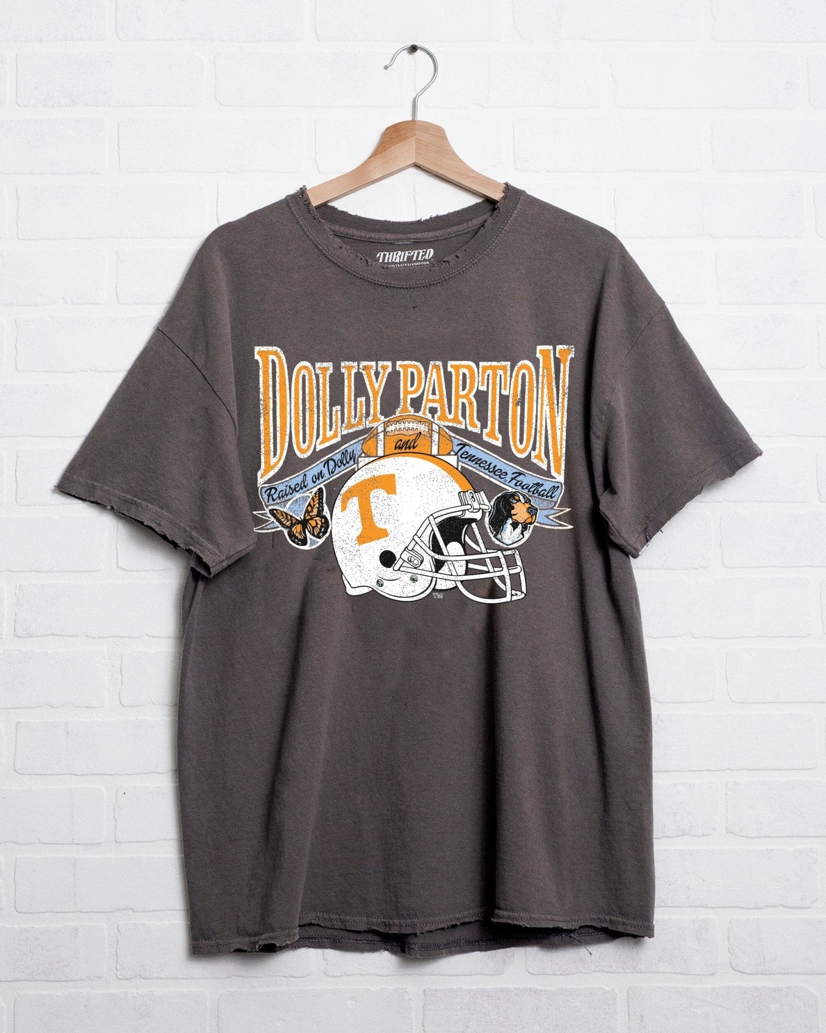 Dolly Parton Raised on Dolly & Tennessee Football Charcoal Thrifted Distressed Tee