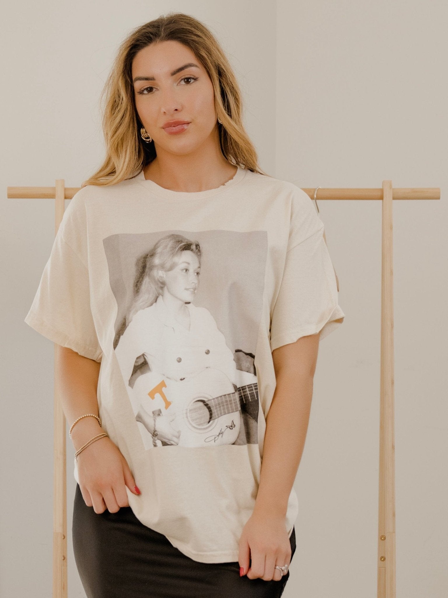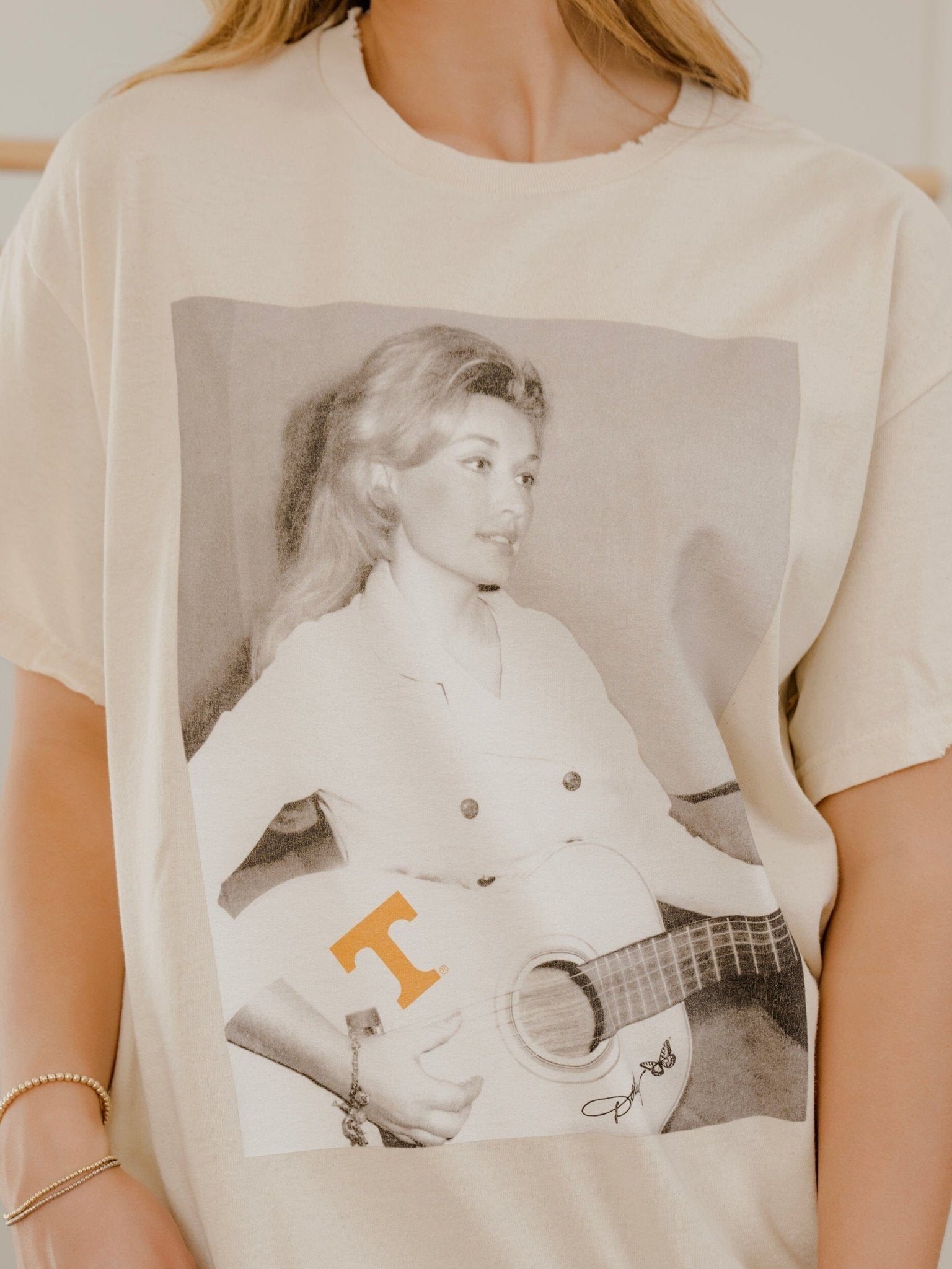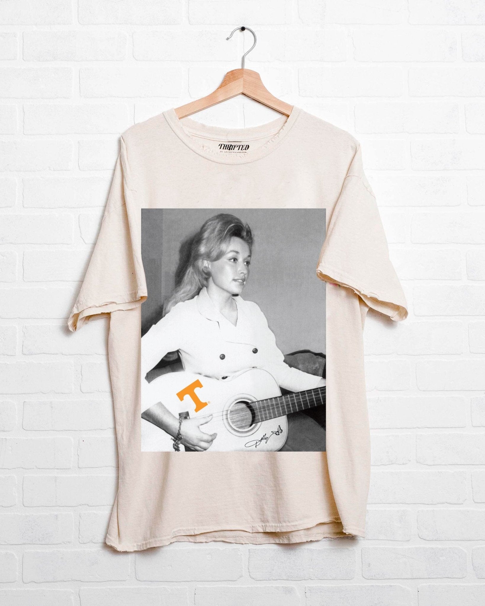 Dolly Parton Tennessee Tattoo Guitar Off White Thrifted Distressed Tee