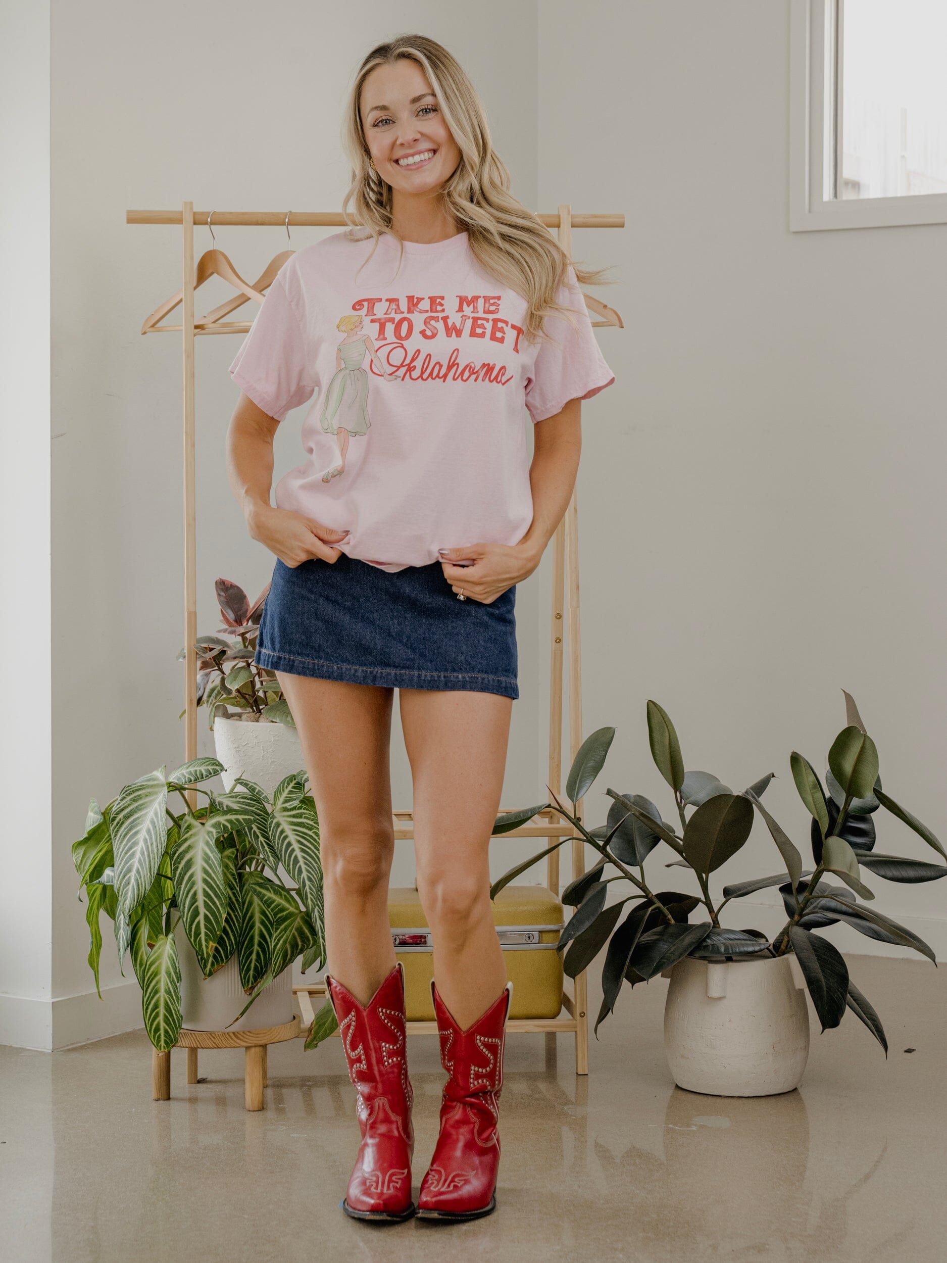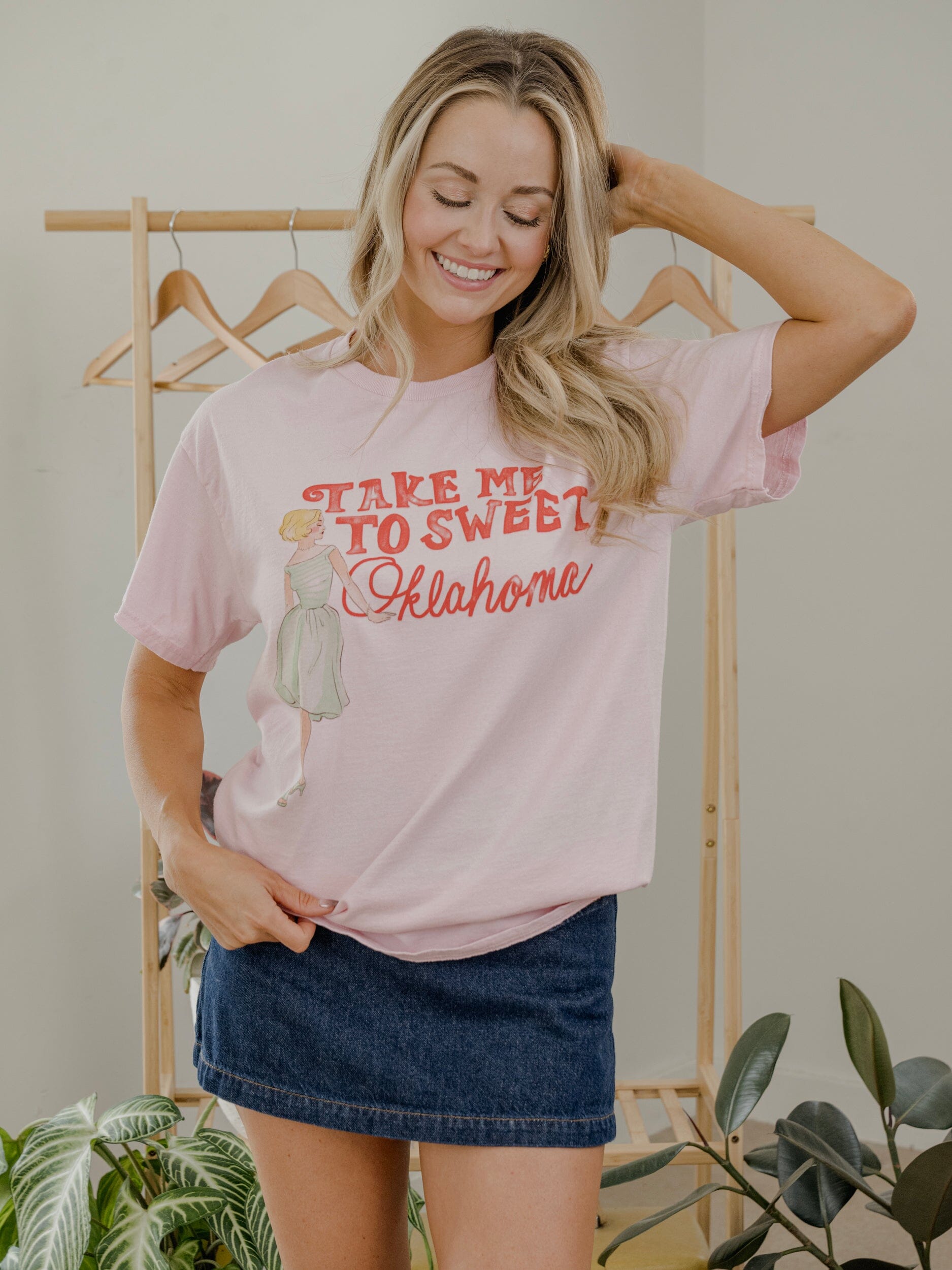 Take Me To Sweet Oklahoma Pink Thrifted Tee