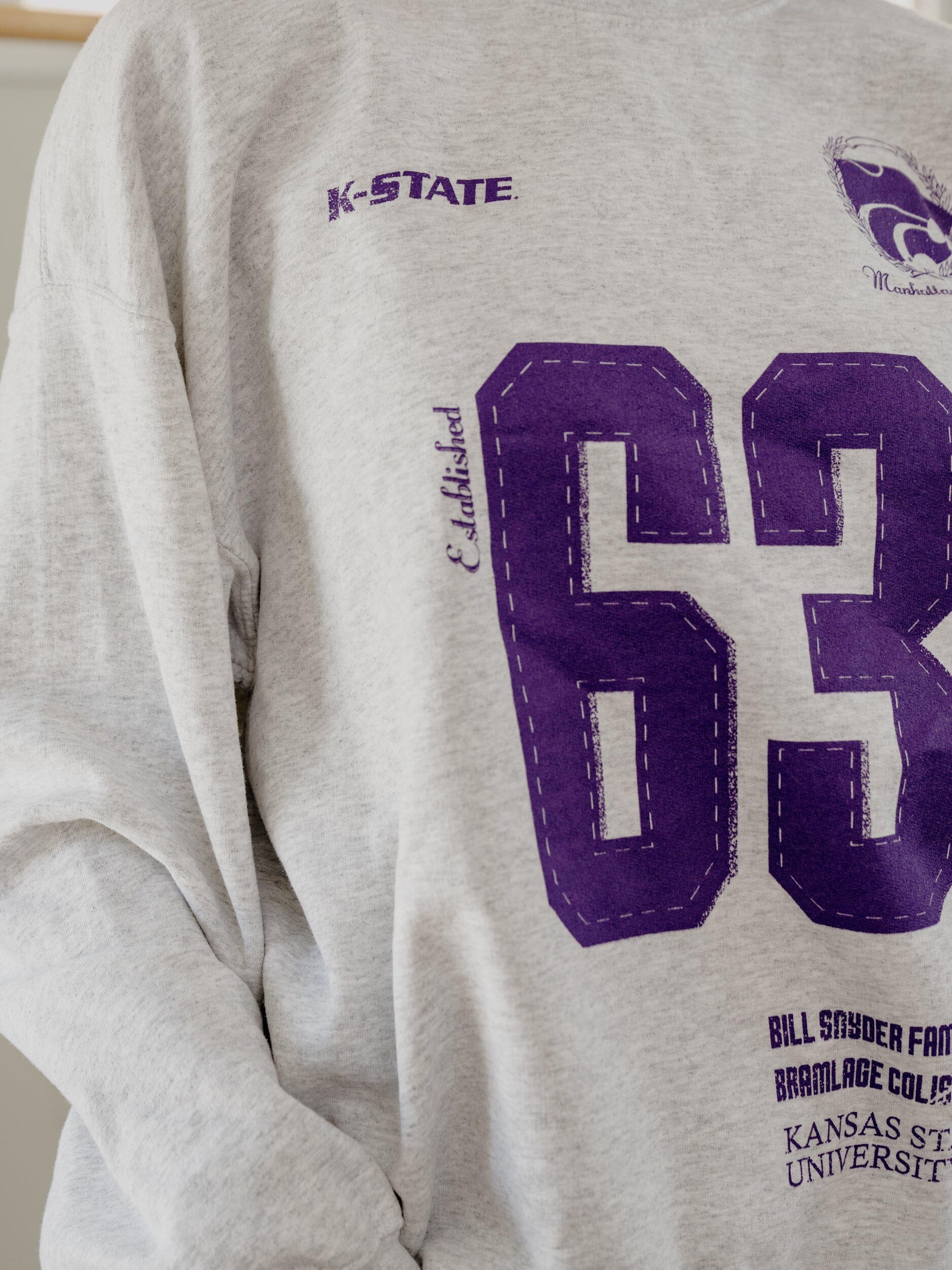 KSU Wildcats Crest Stamp Ash Gray Thrifted Sweatshirt