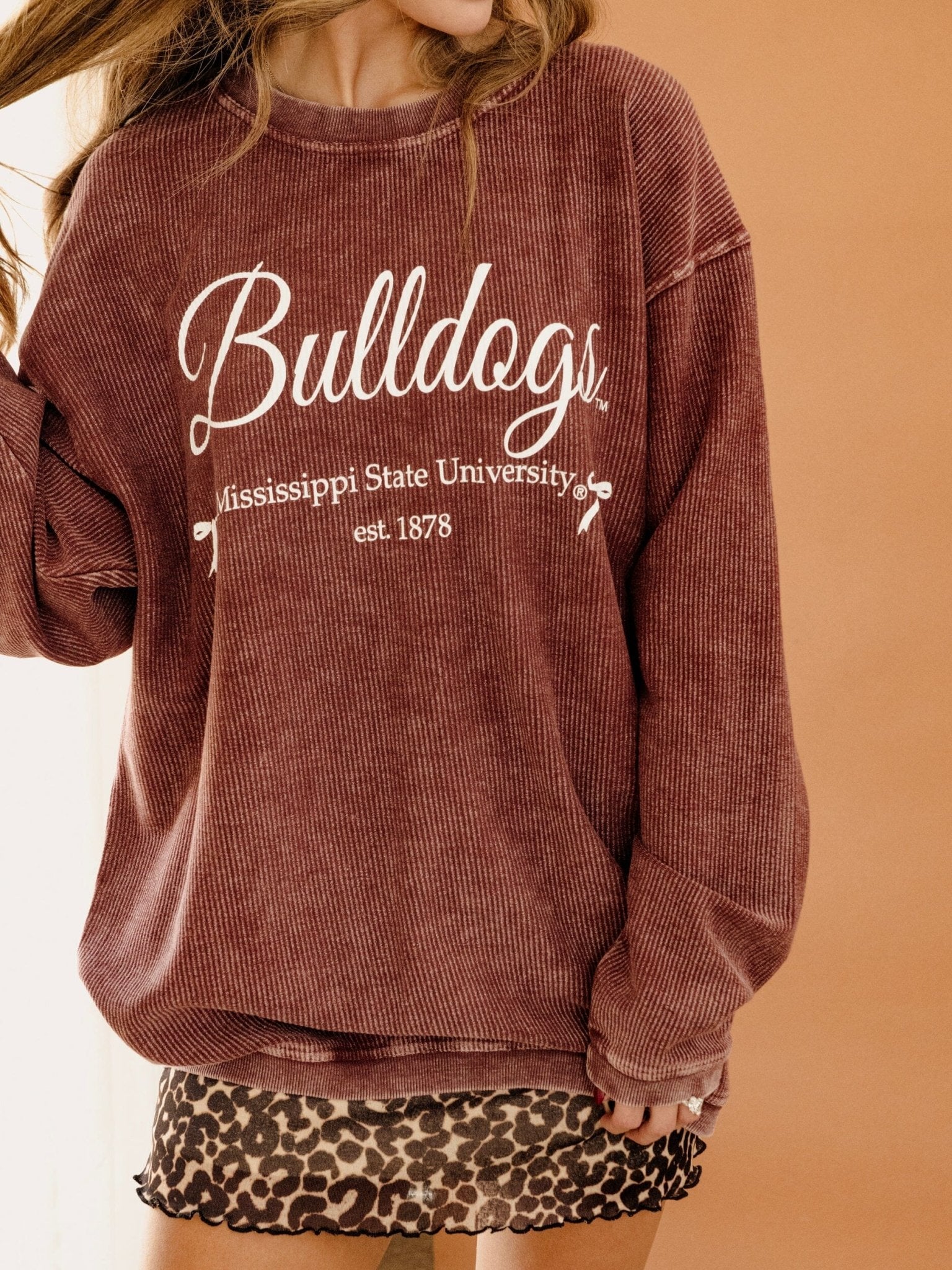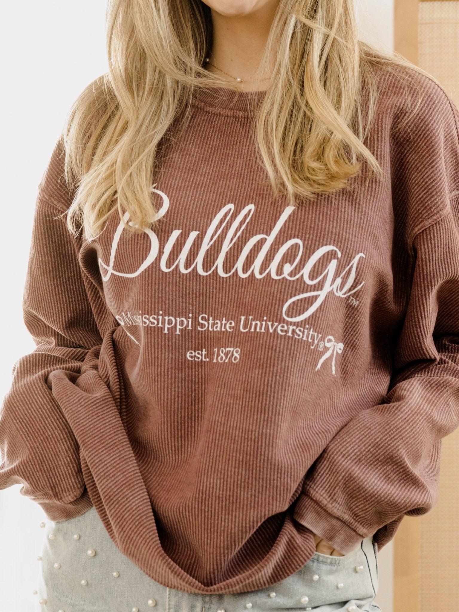 Mississippi State Bulldogs Established Bows Maroon Corded Crew Sweatshirt