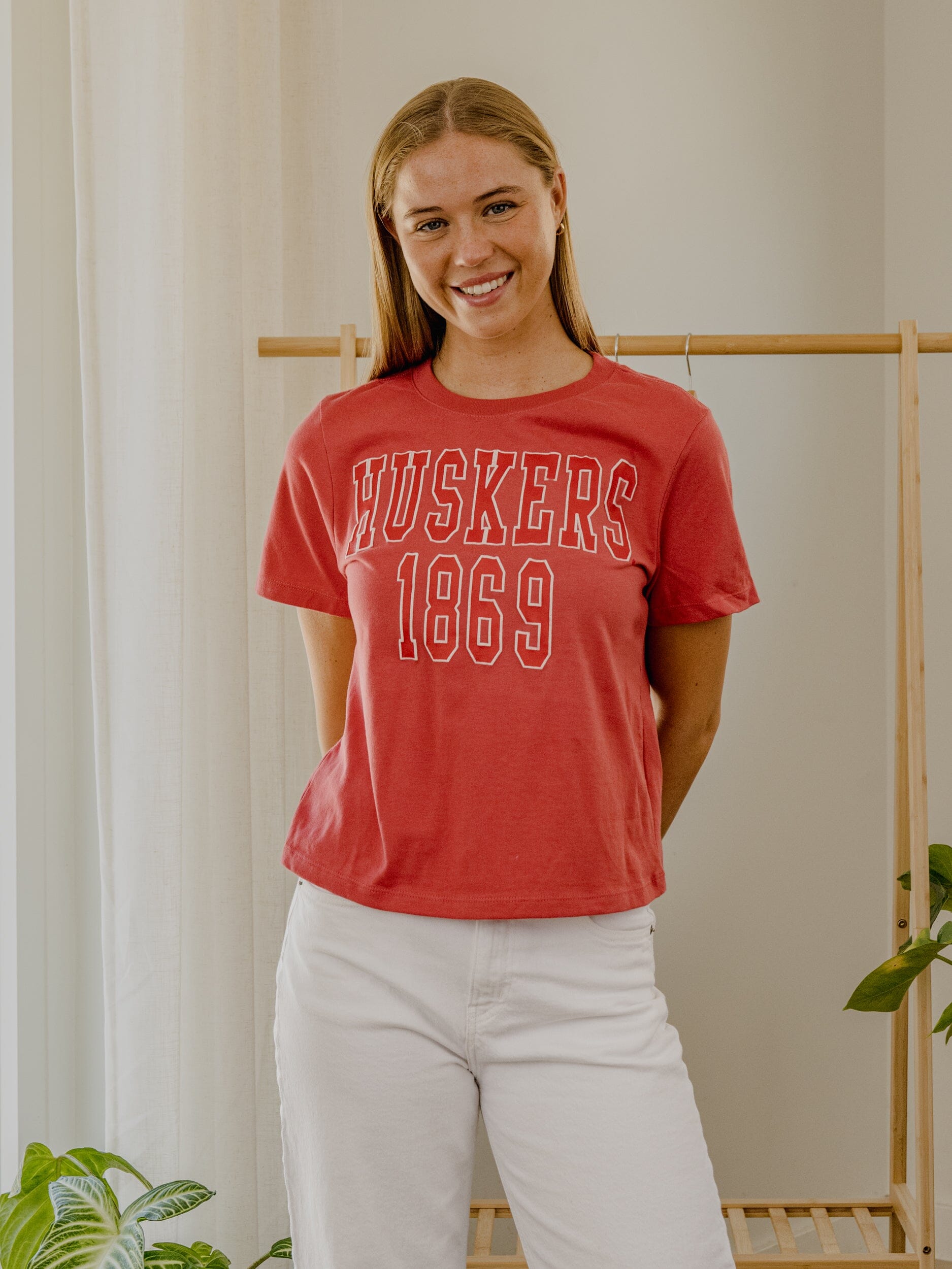 Nebraska Huskers College Block Puff Ink Red Ellie Perfect Tee