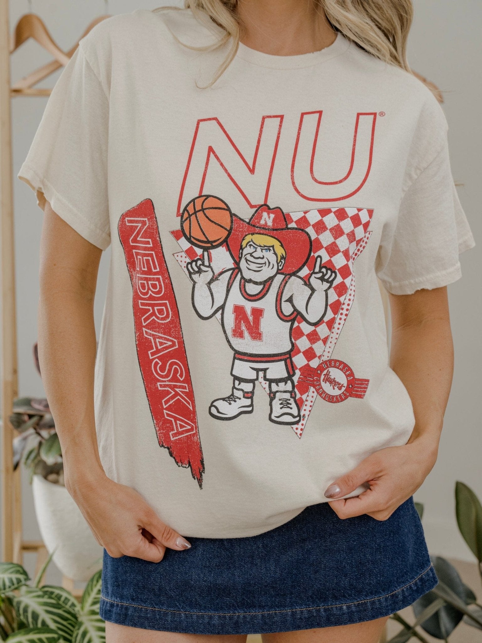 Nebraska Huskers Courtside Basketball Off White Thrifted Tee