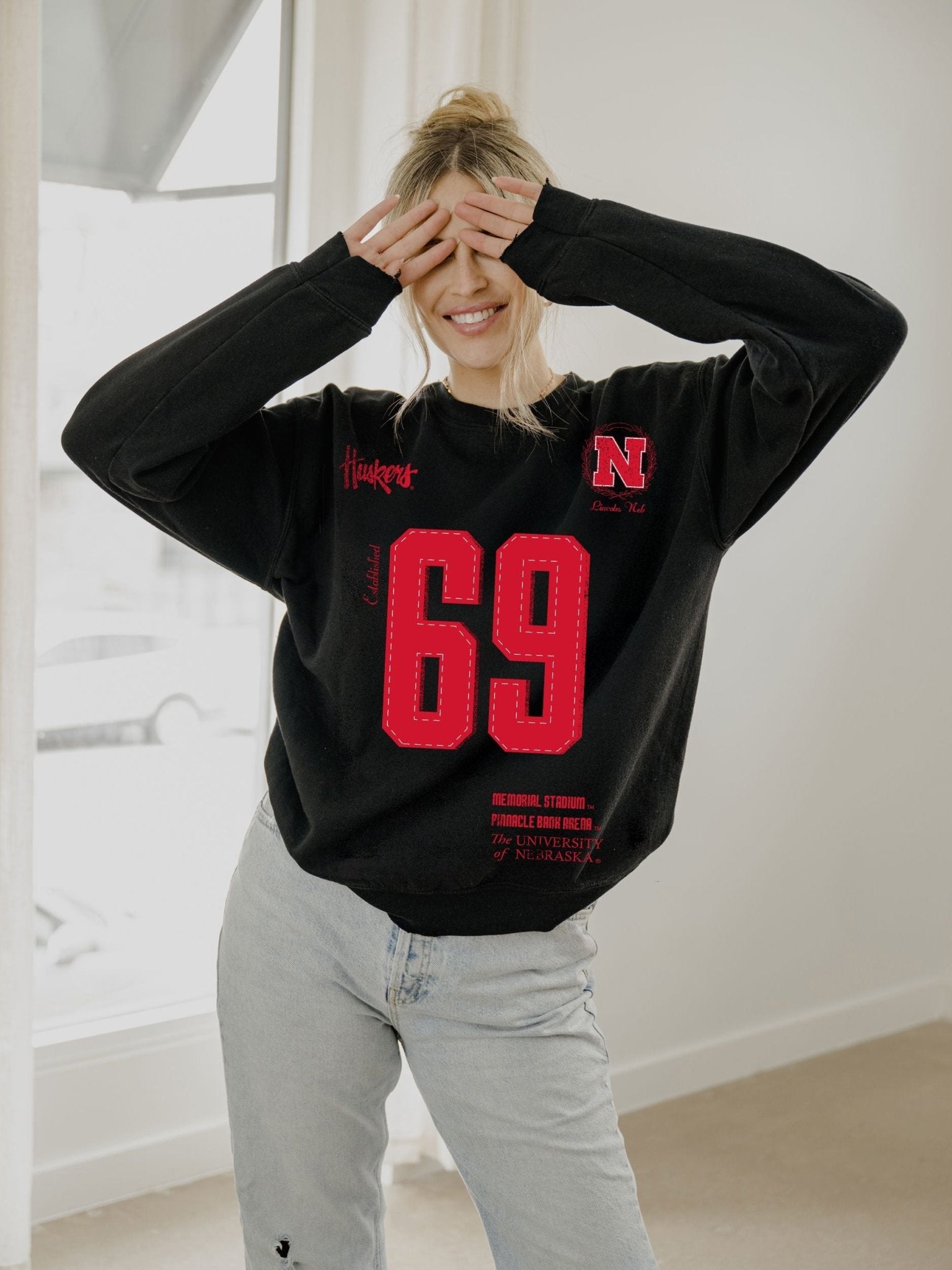 Nebraska Huskers Crest Stamp Black Thrifted Sweatshirt