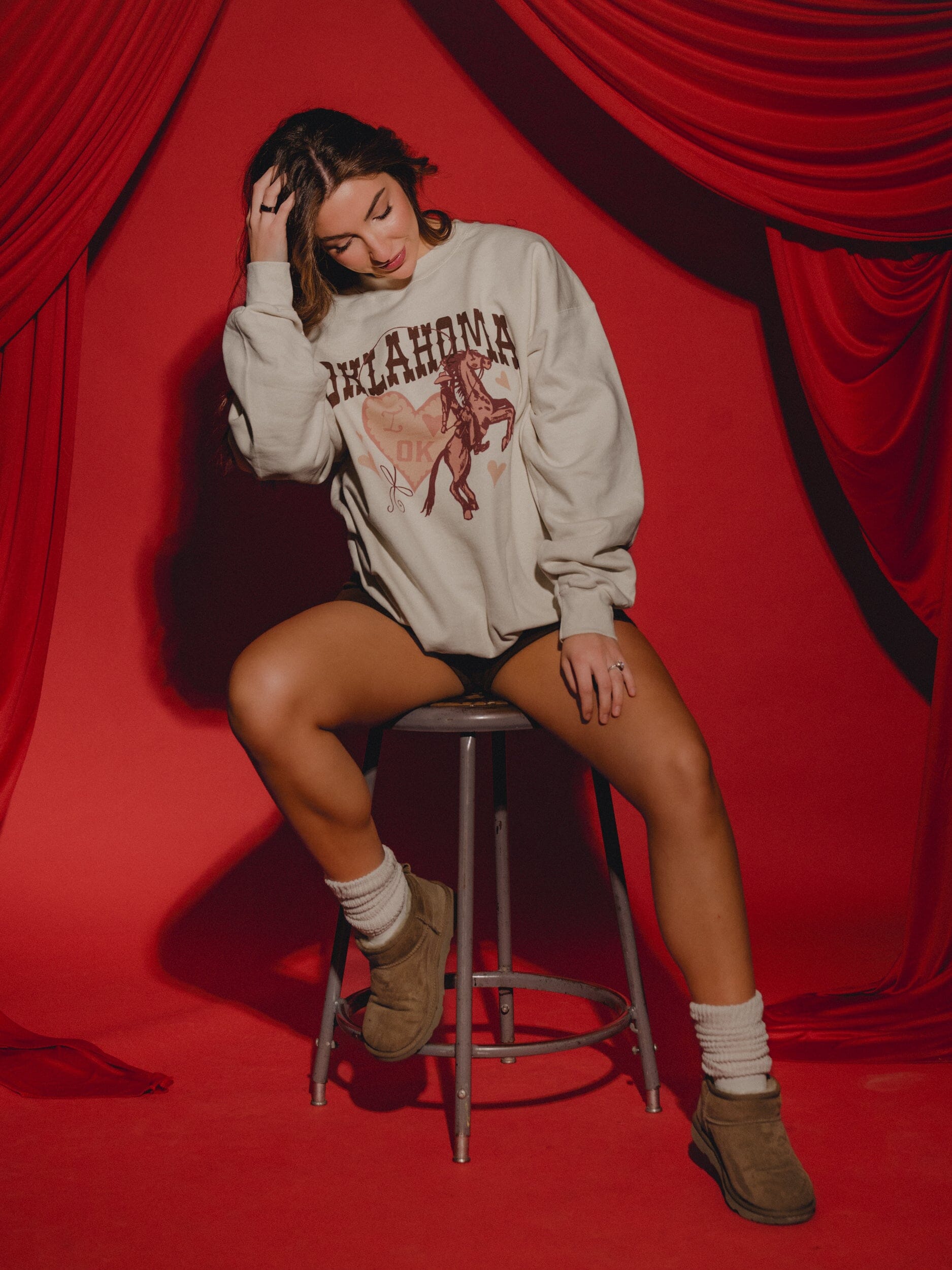 Oklahoma Hearts & Horses Natural Sweatshirt