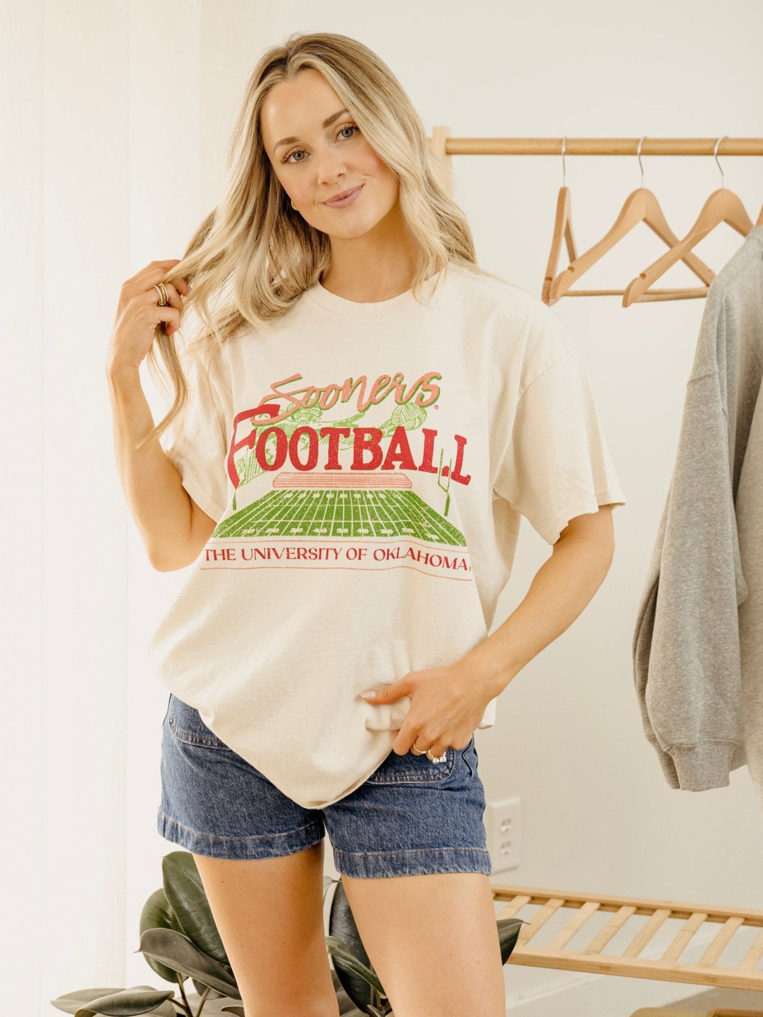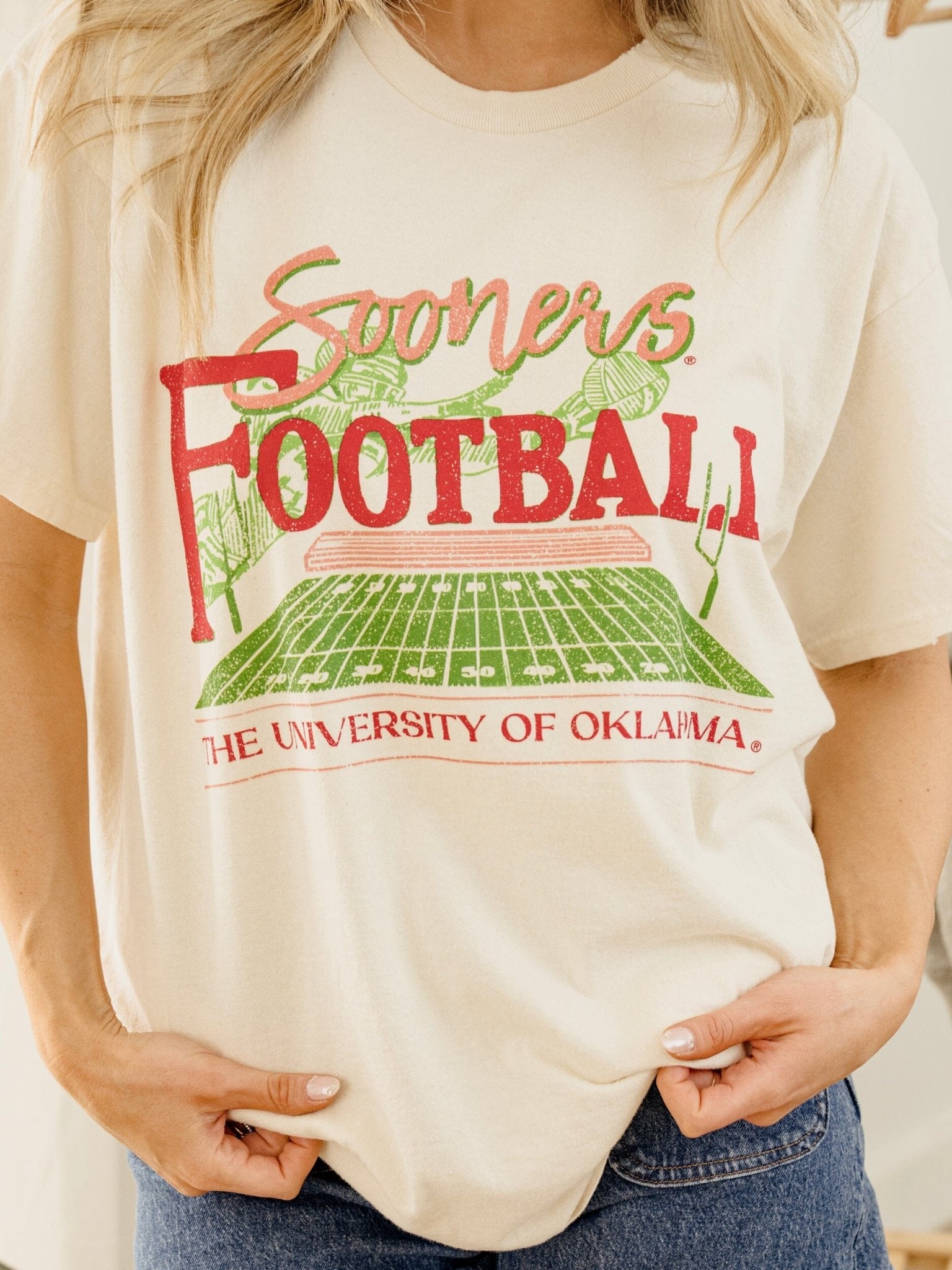 OU Sooners Football Field Off White Thrifted Tee