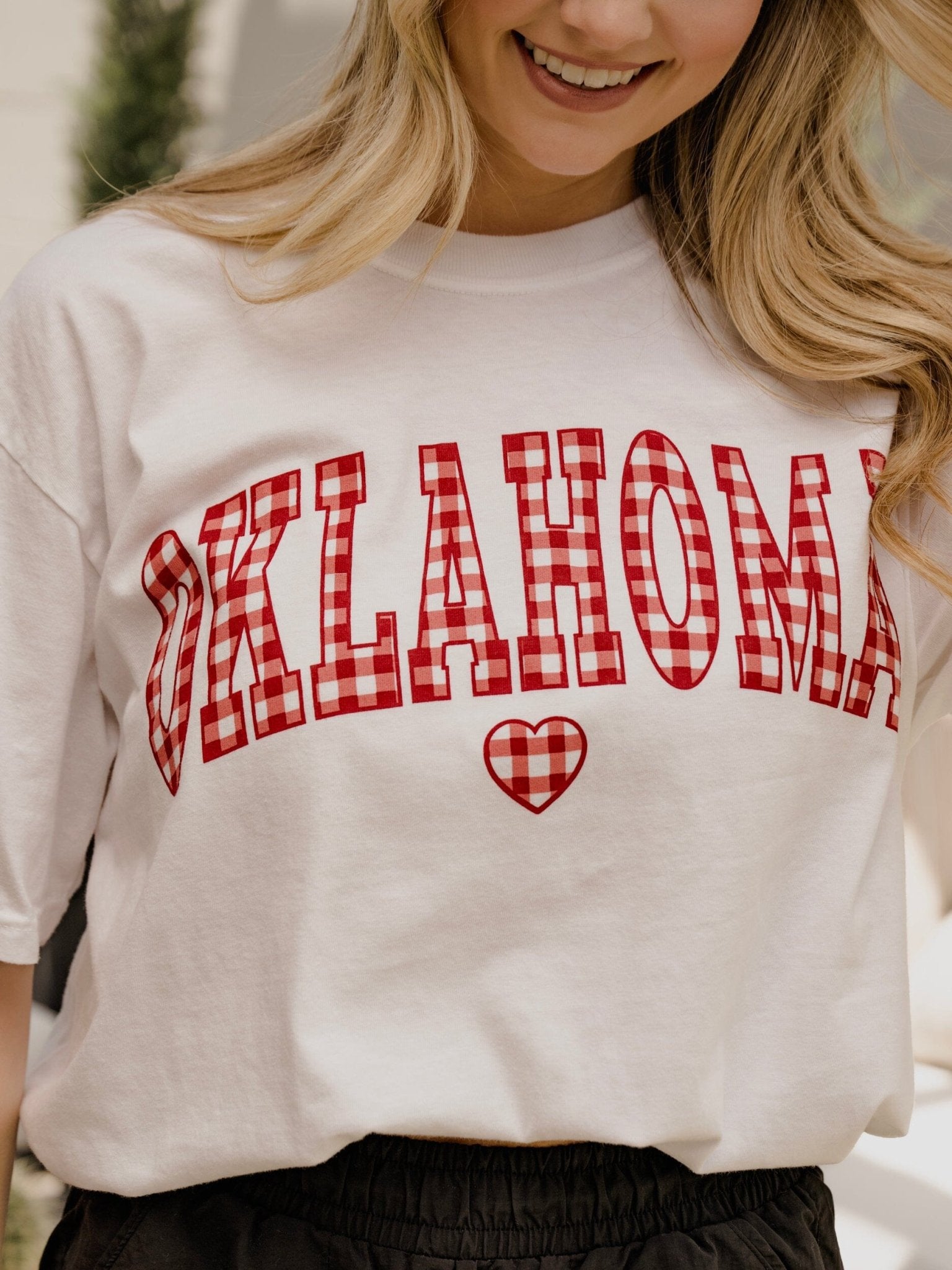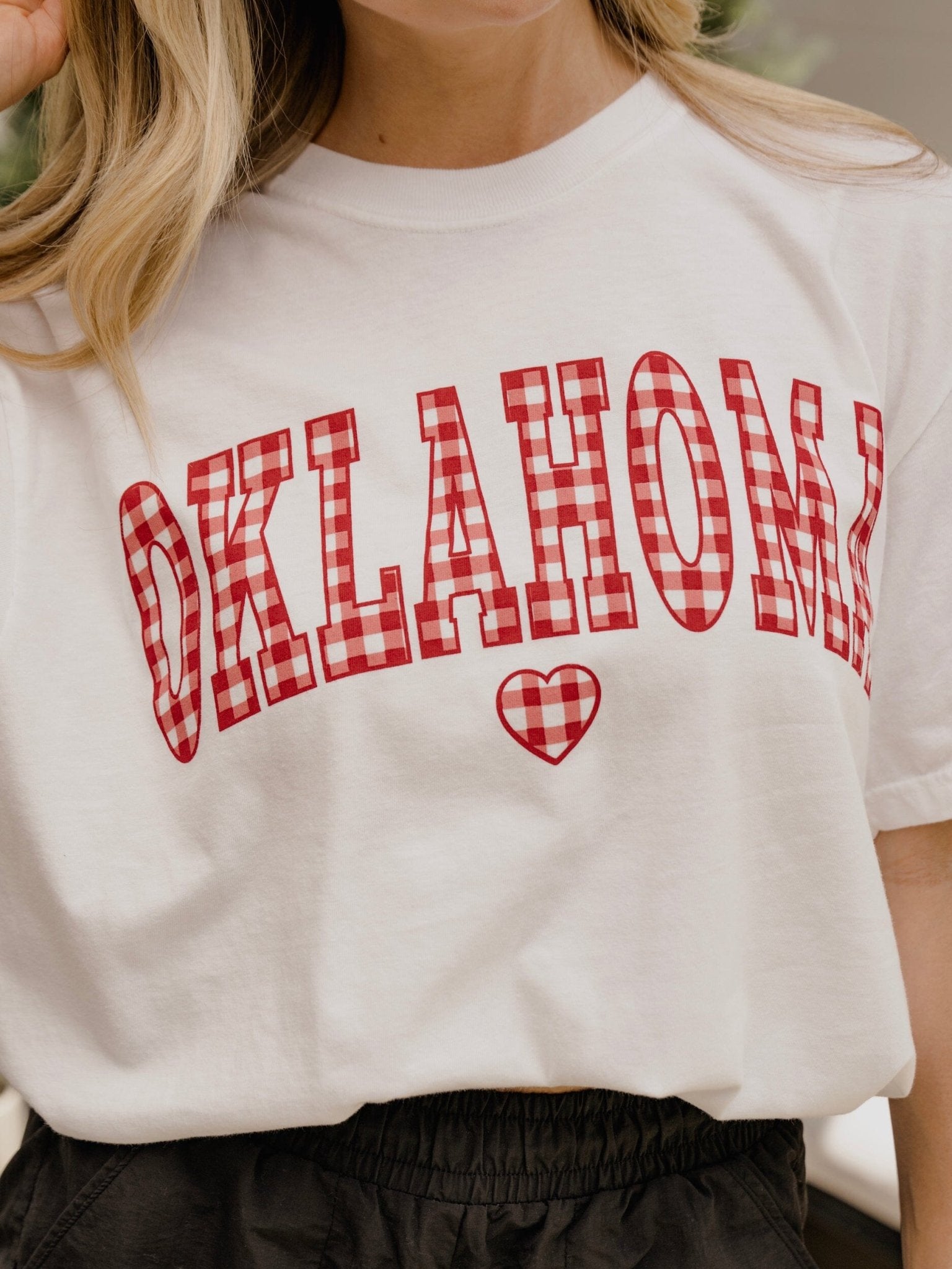 OU Sooners Gingham Heart White Tee