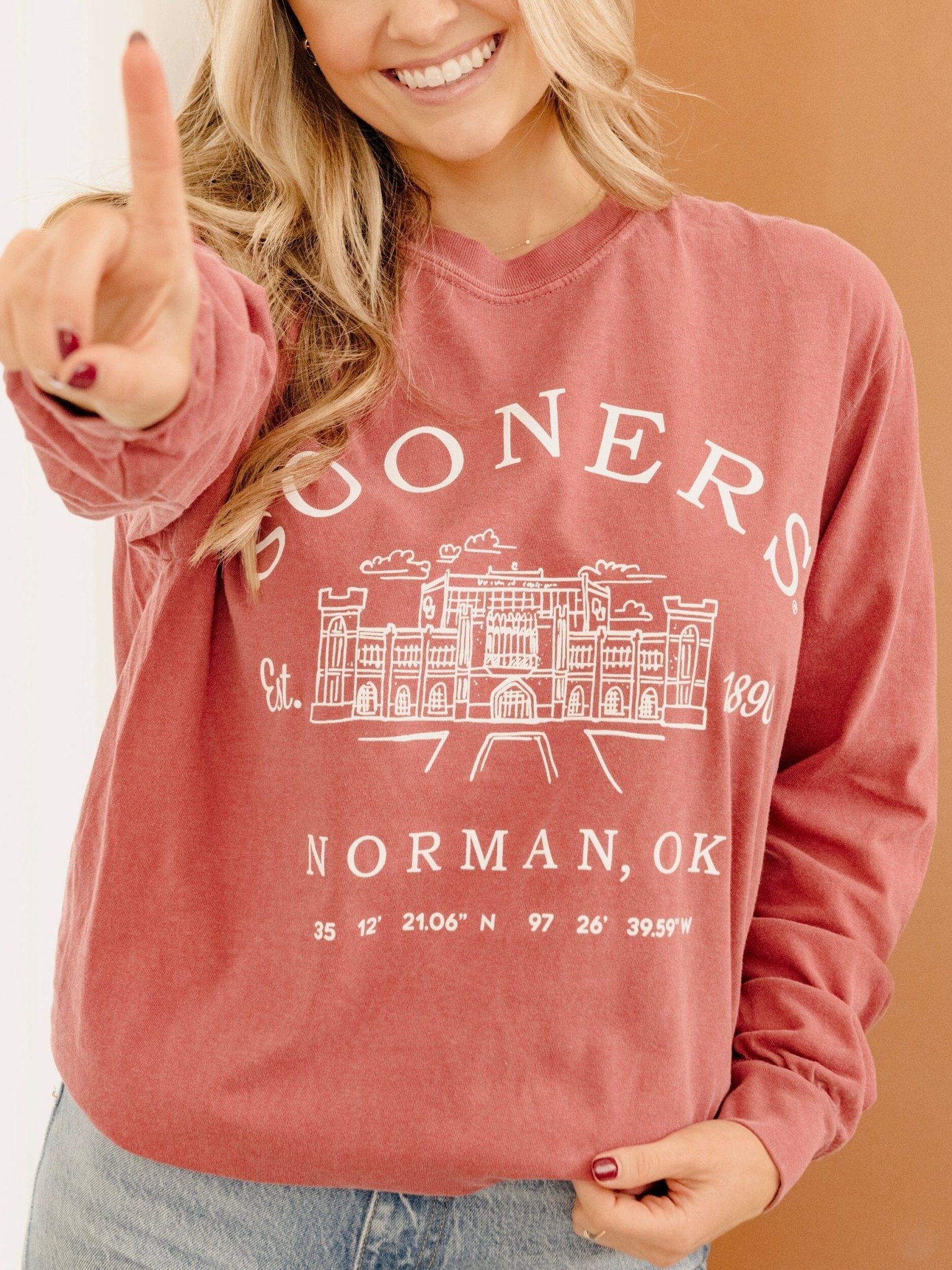 OU Sooners Stadium Coordinates Crimson LS Tee