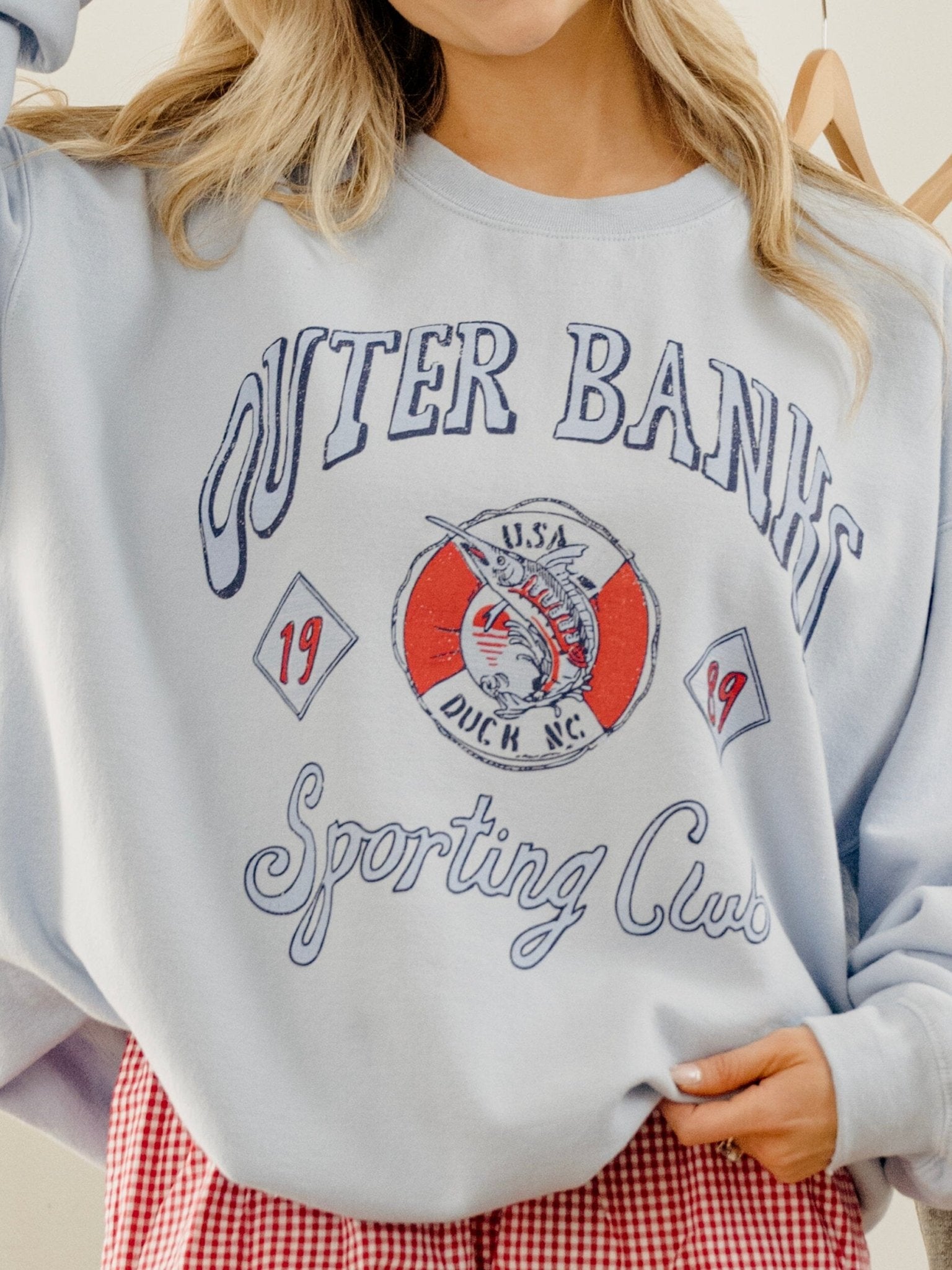 Outer Banks Sporting Club Light Blue Thrifted Sweatshirt