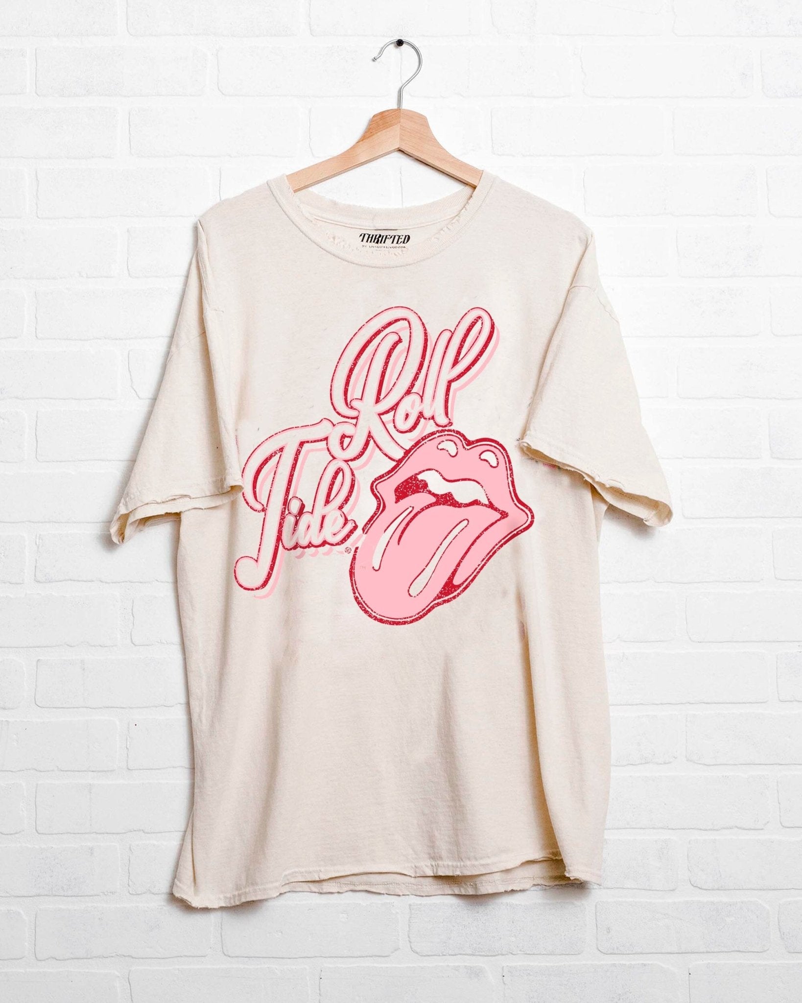 Rolling Stones Bama Crimson Tide Malibu Puff Ink Off White Thrifted Tee