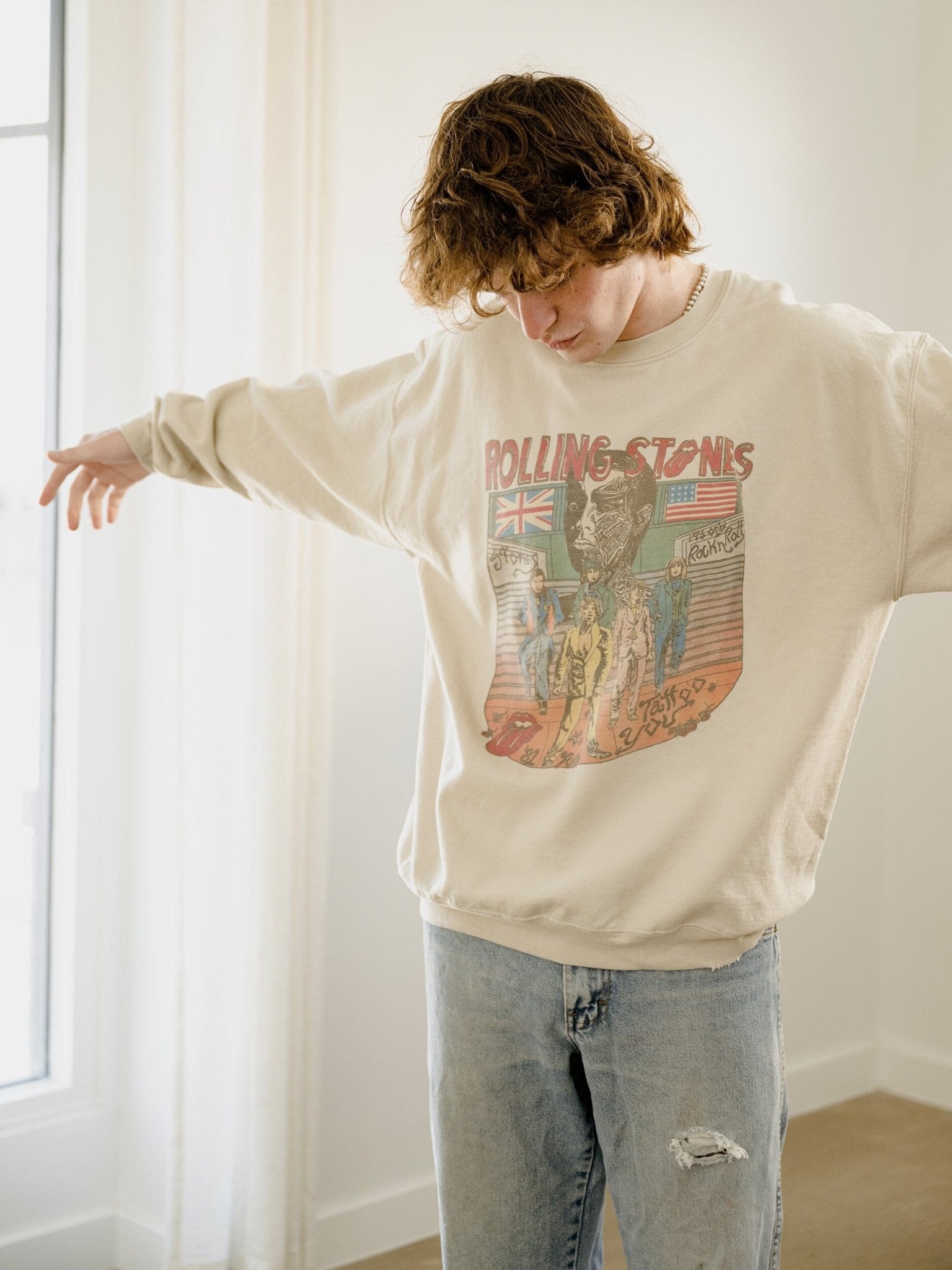 Rolling Stones Tattoo You Sand Thrifted Sweatshirt