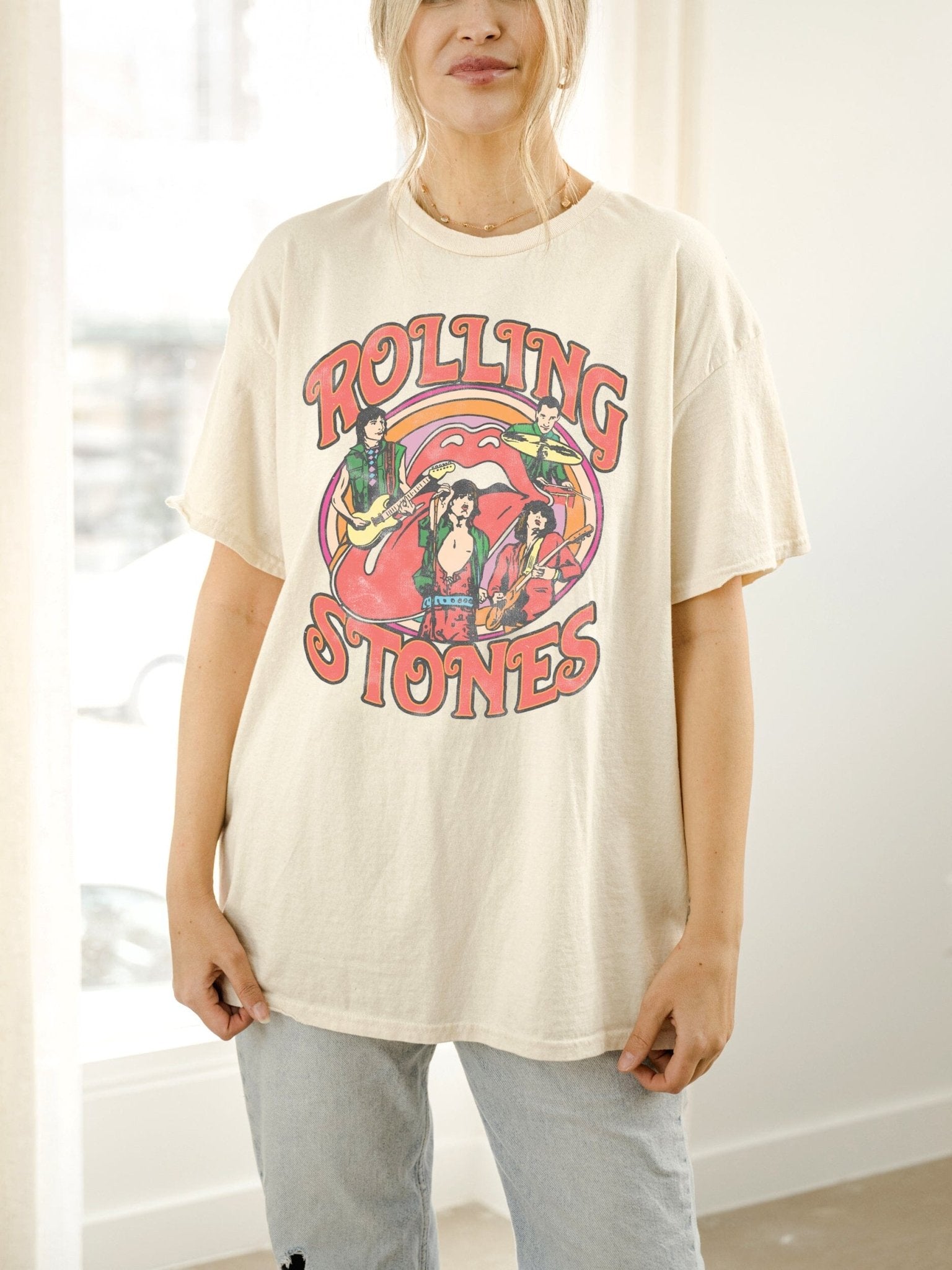 Rolling Stones Vintage Concert Off White Thrifted Distressed Tee