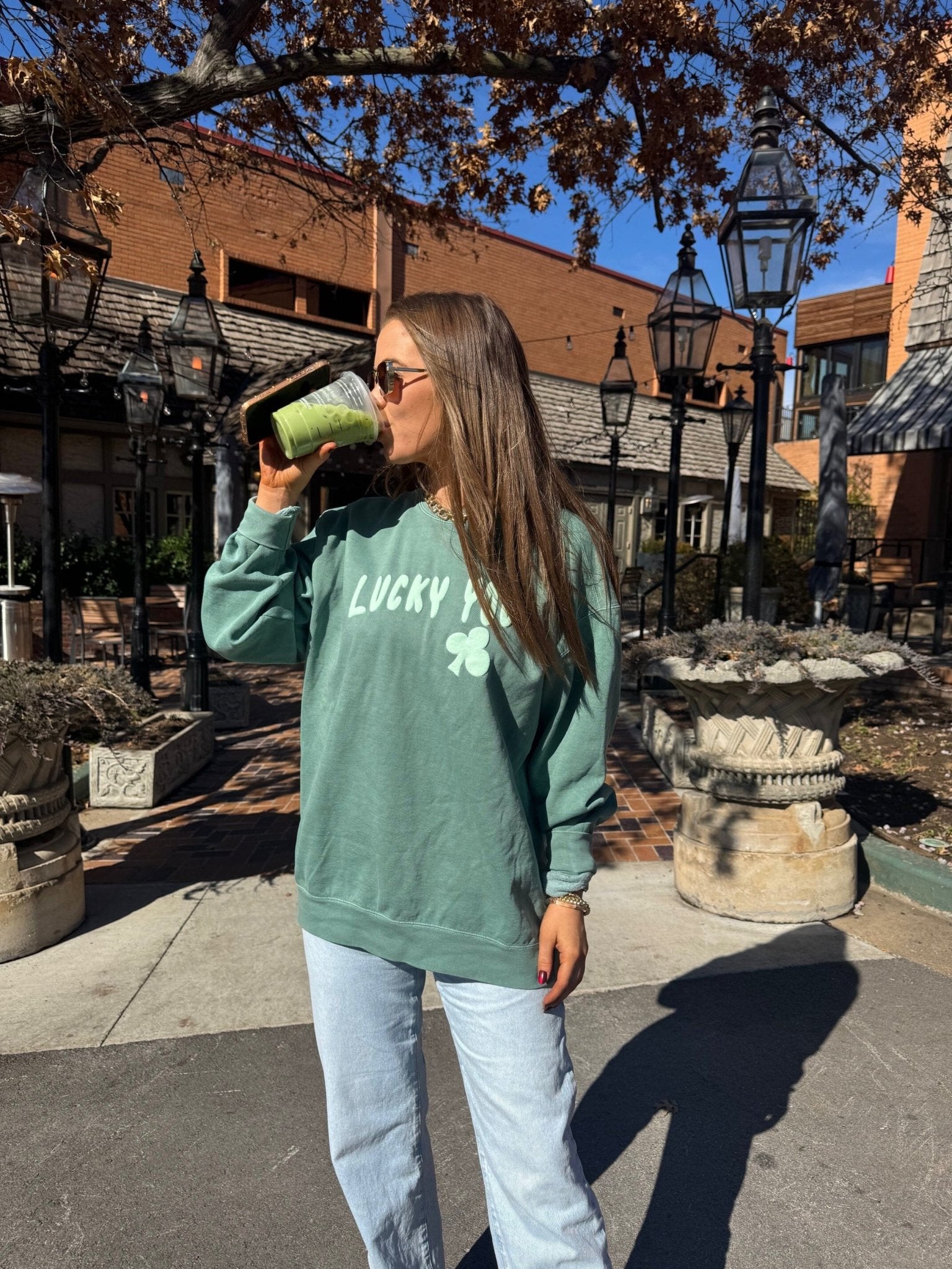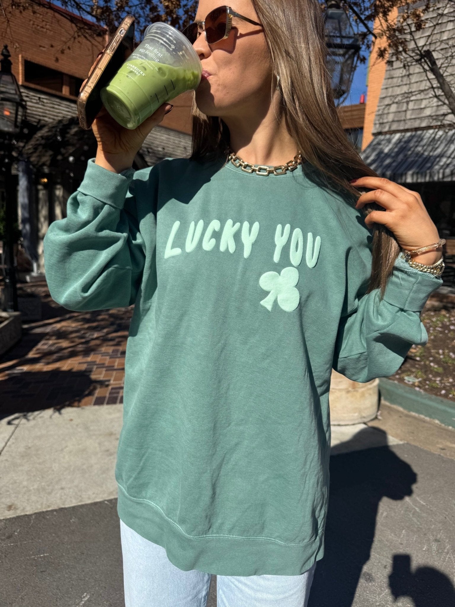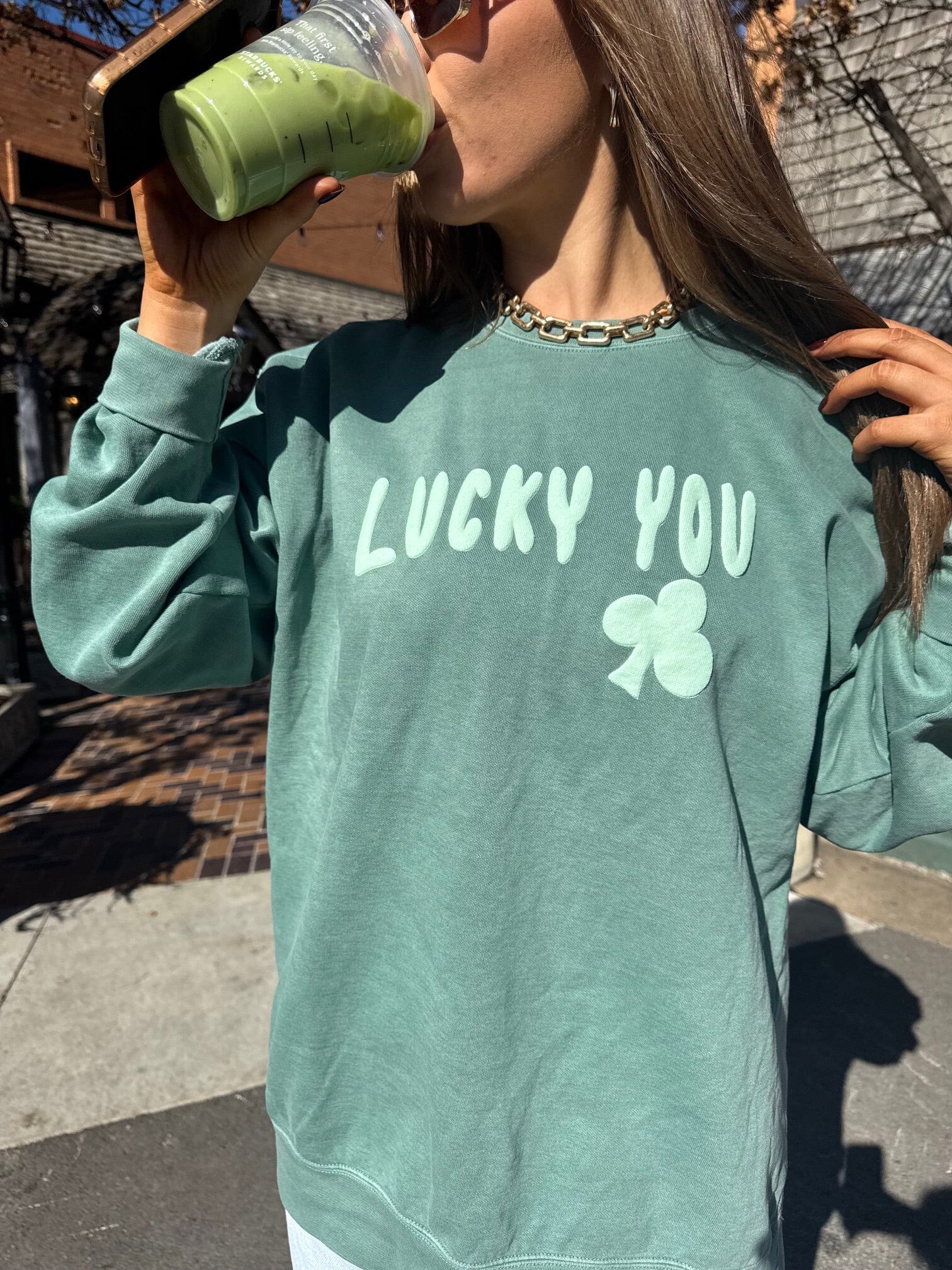 St. Patrick's Day Lucky You Puff Ink Light Green CC Sweatshirt