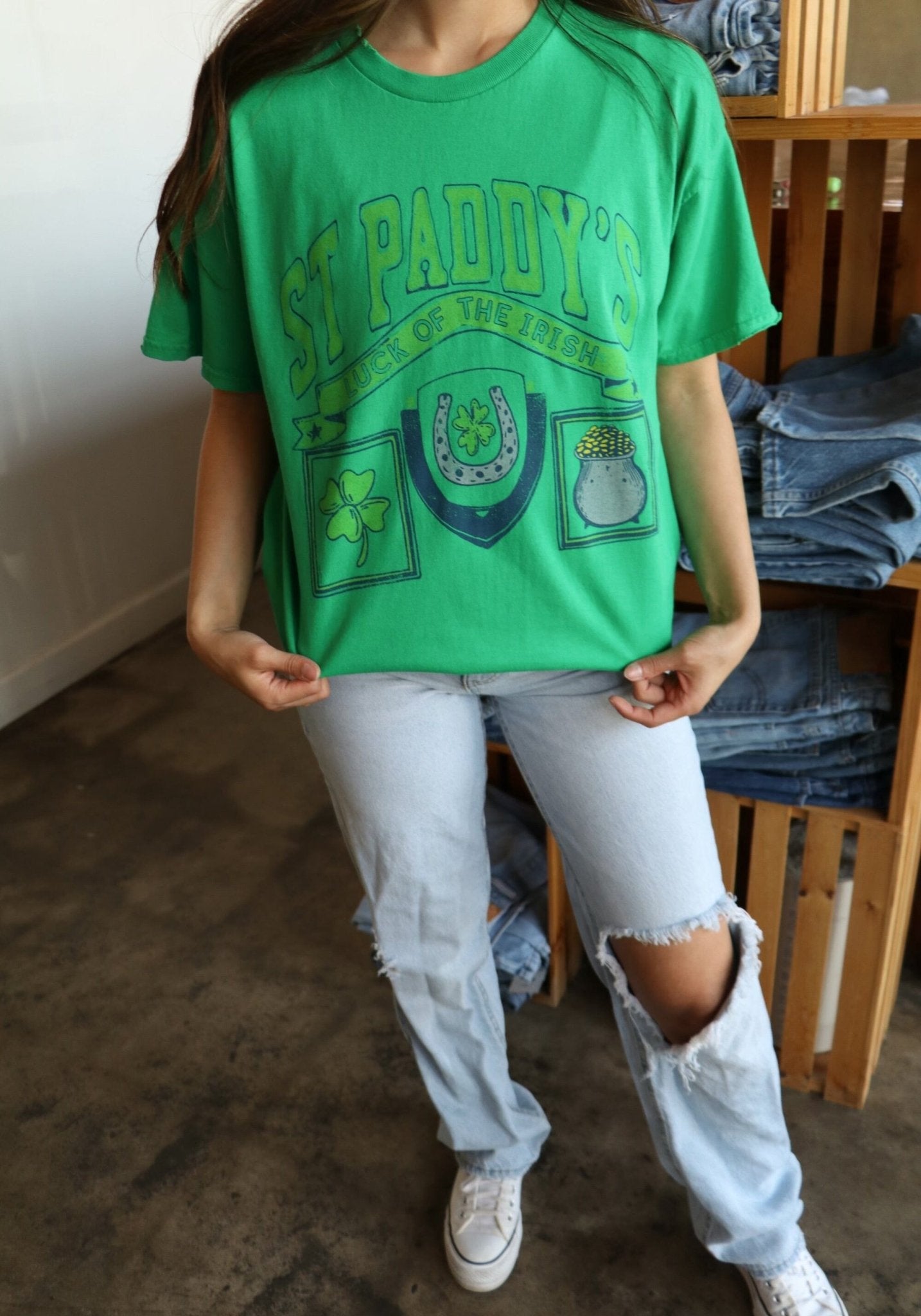 St. Patrick's Day Patch Green Thrifted Tee