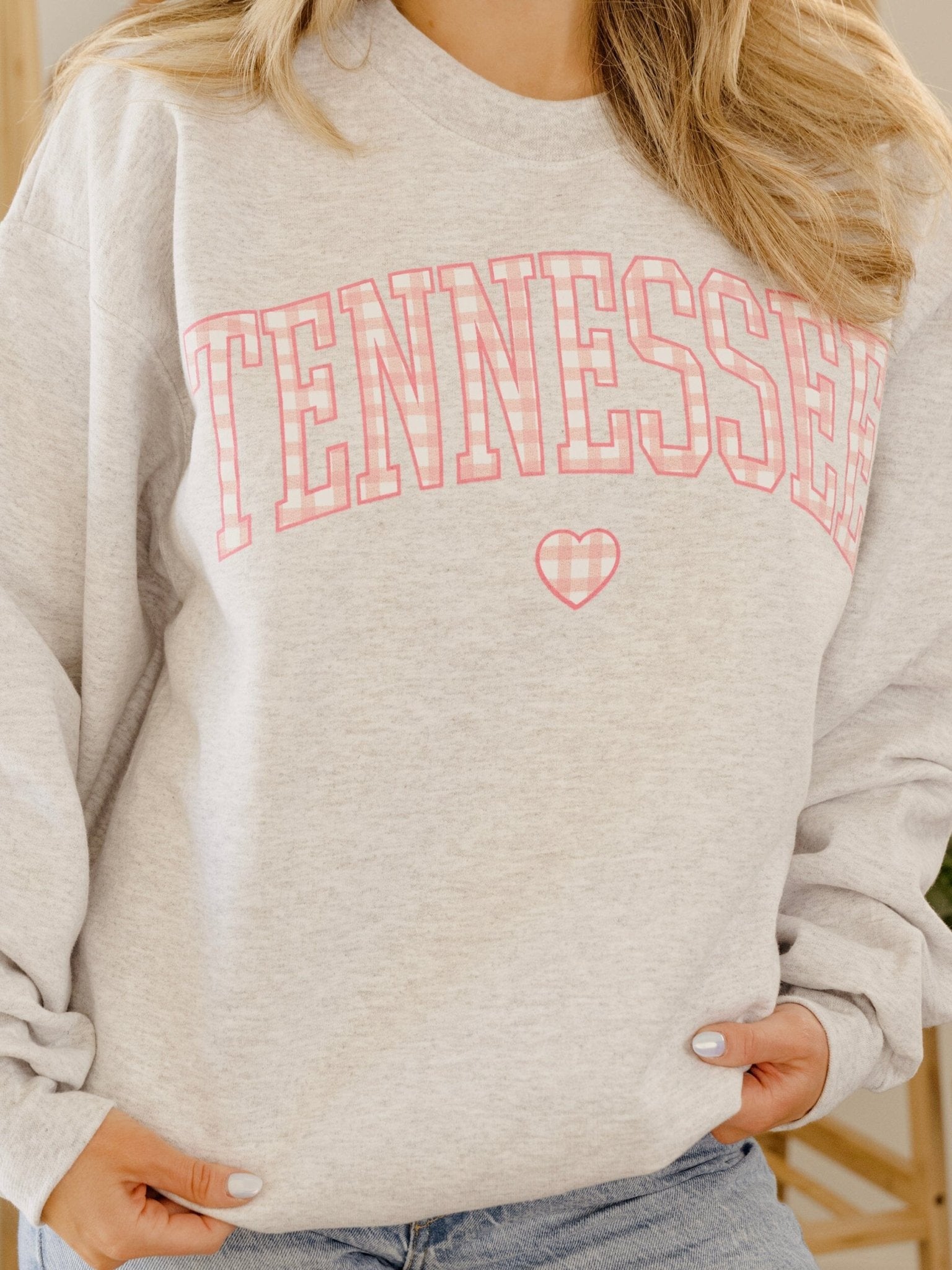 Tennessee Heart Gingham Print Gray Sweatshirt