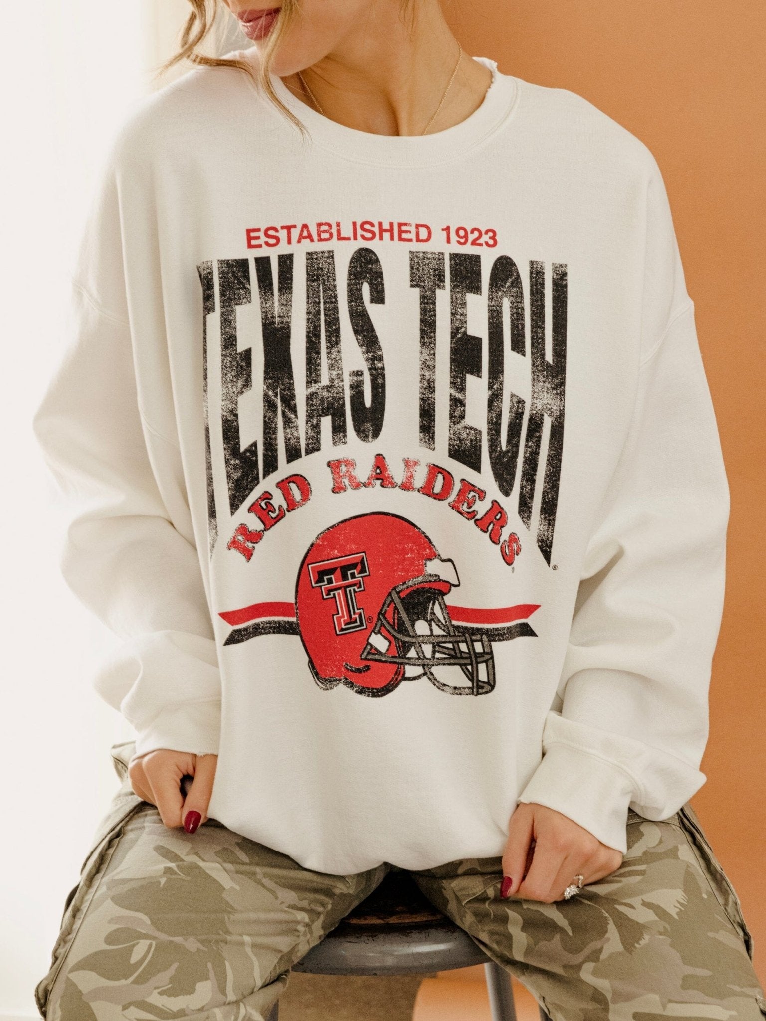 Texas Tech Established Date Helmet White Thrifted Sweatshirt