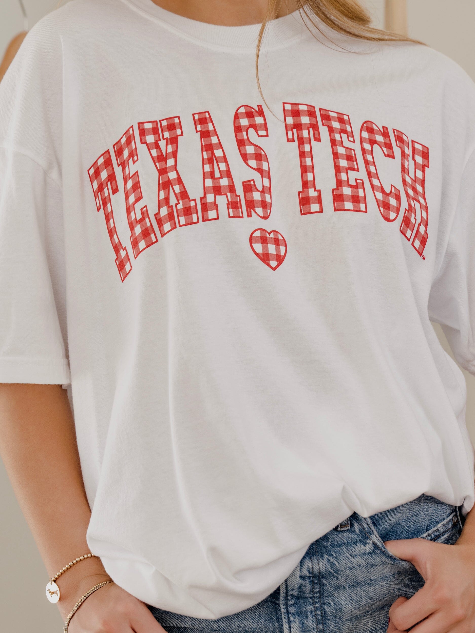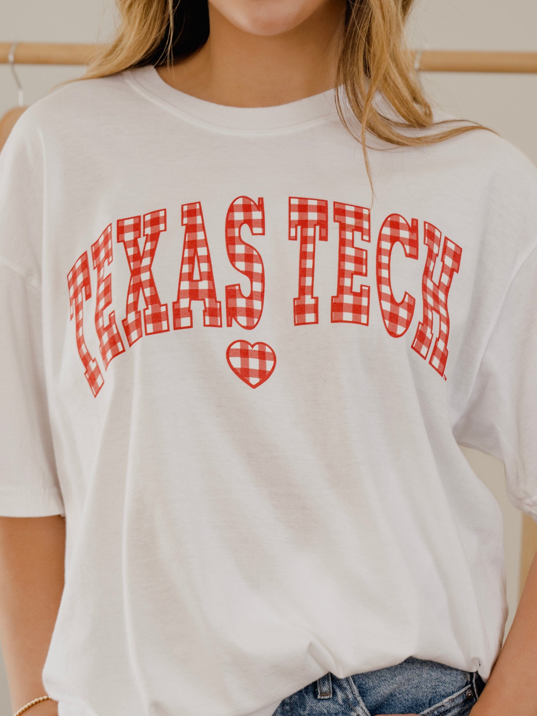 Texas Tech Gingham Heart White Tee