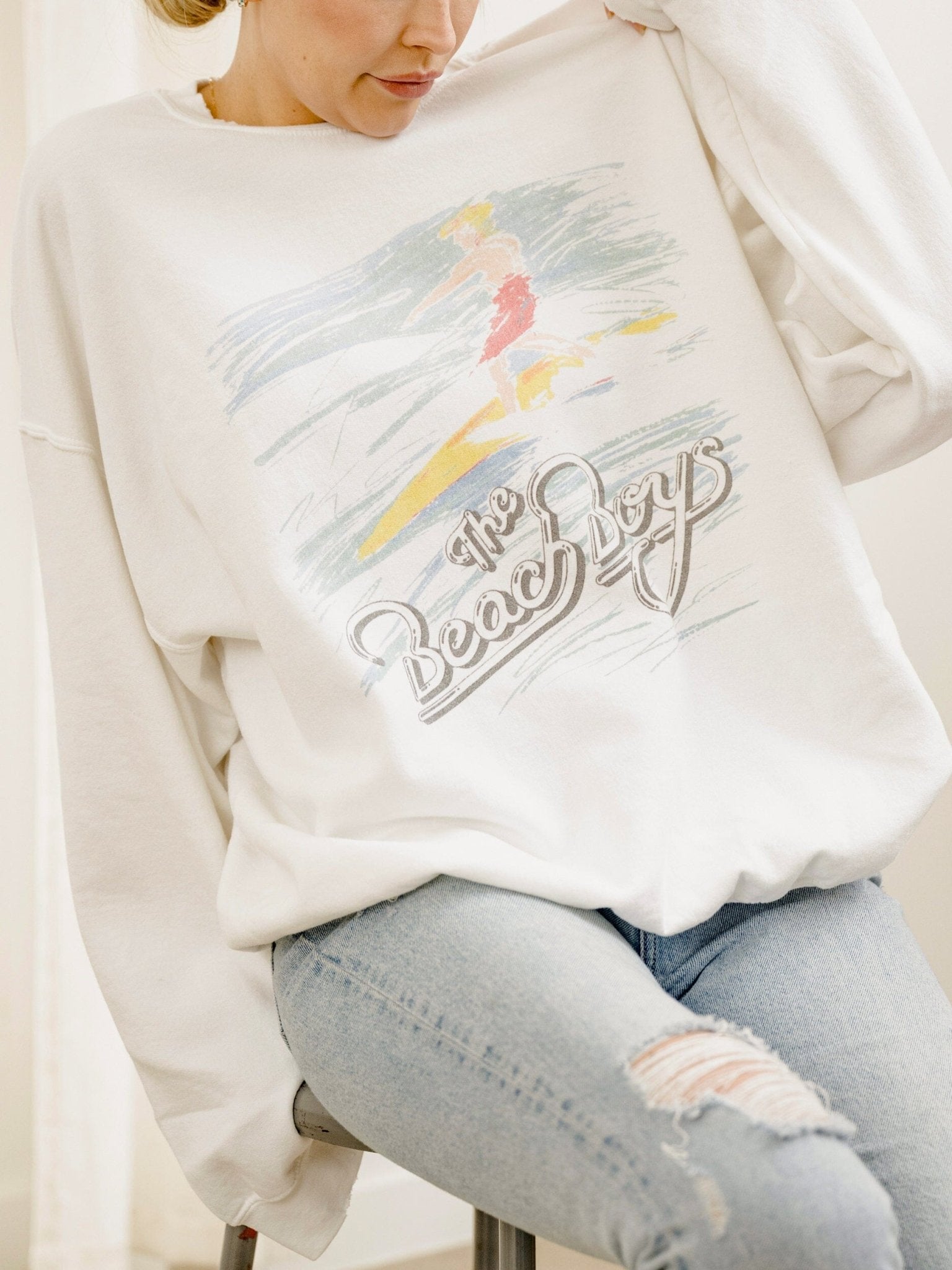 Our 50/50 Preshrunk Cotton/Polyester thrifted sweatshirts are meaningfully distressed and officially licensed. Each piece is one of a kind, and colors/distressing may vary from shirt to shirt.