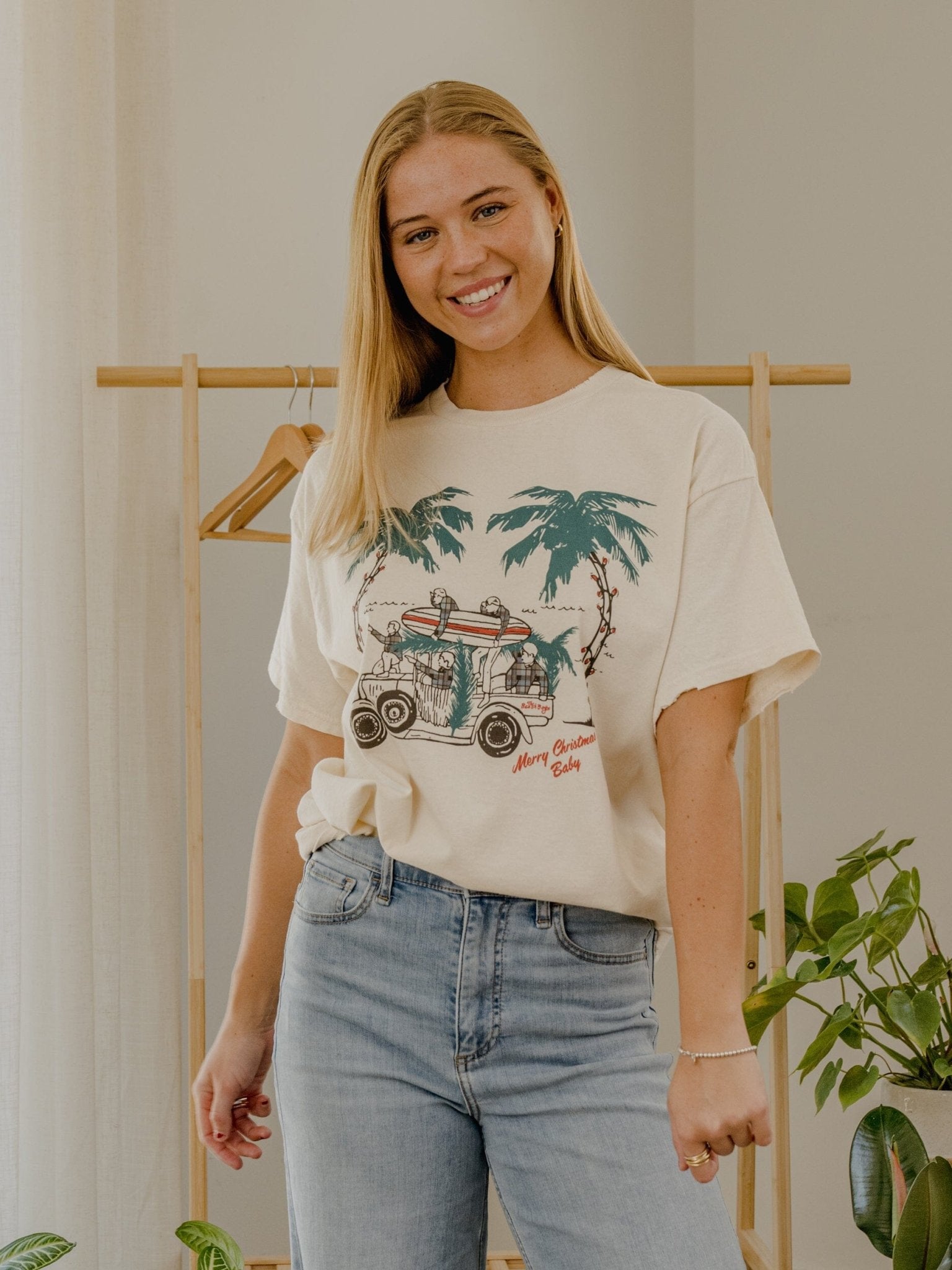 The Beach Boys Merry Christmas Baby Off White Thrifted Distressed Tee