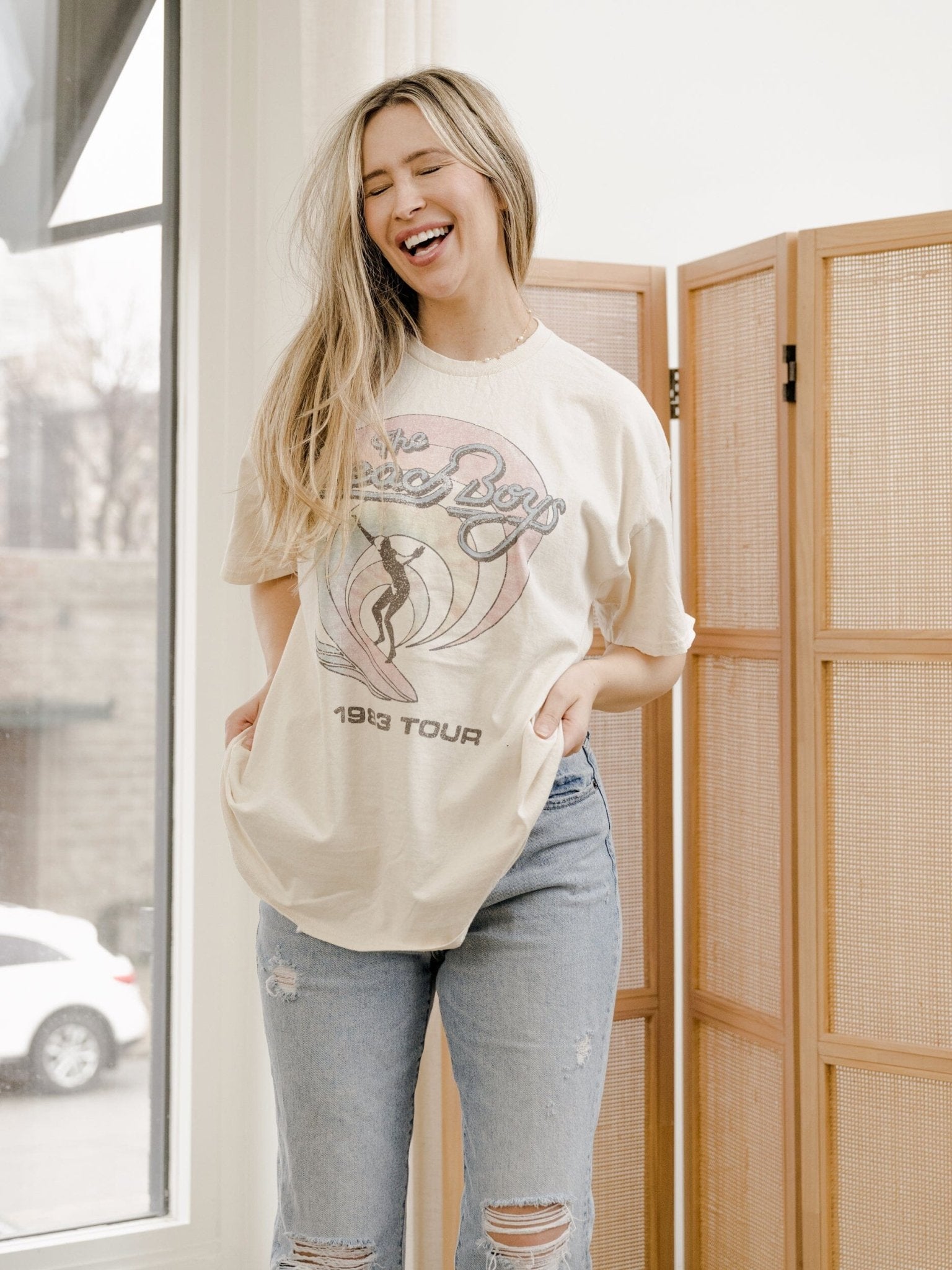 Our 100% Cotton thrifted tees are meaningfully distressed and officially licensed. Each piece is one of a kind, and colors/distressing may vary from shirt to shirt.