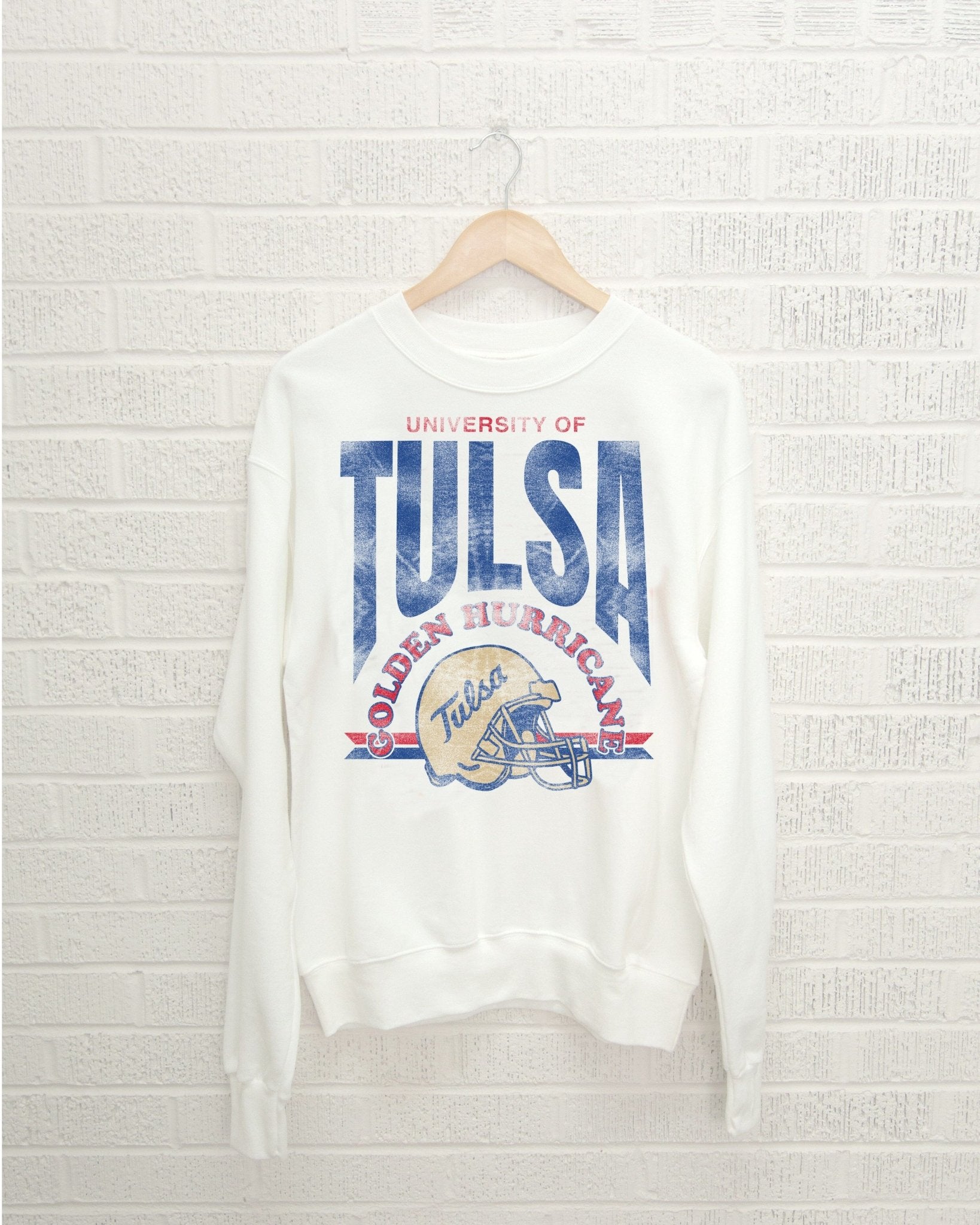 Tulsa Hurricane Established Date Helmet White Thrifted Sweatshirt