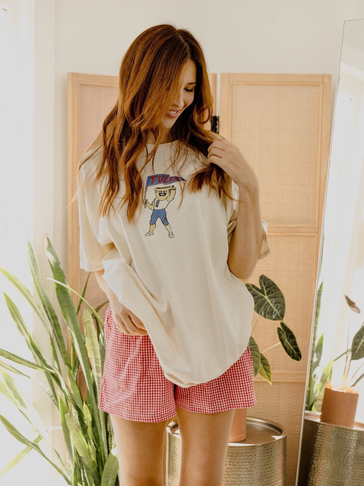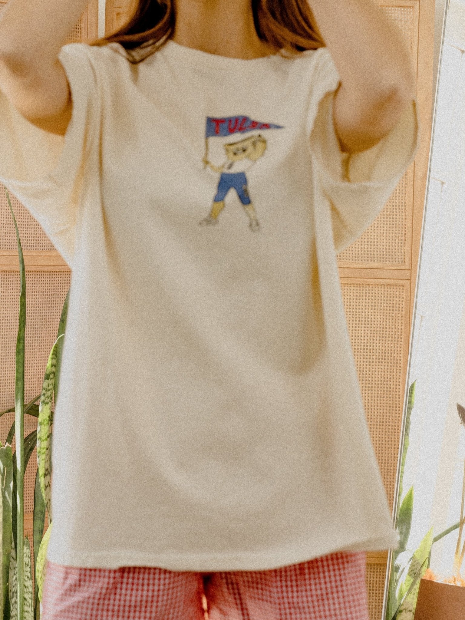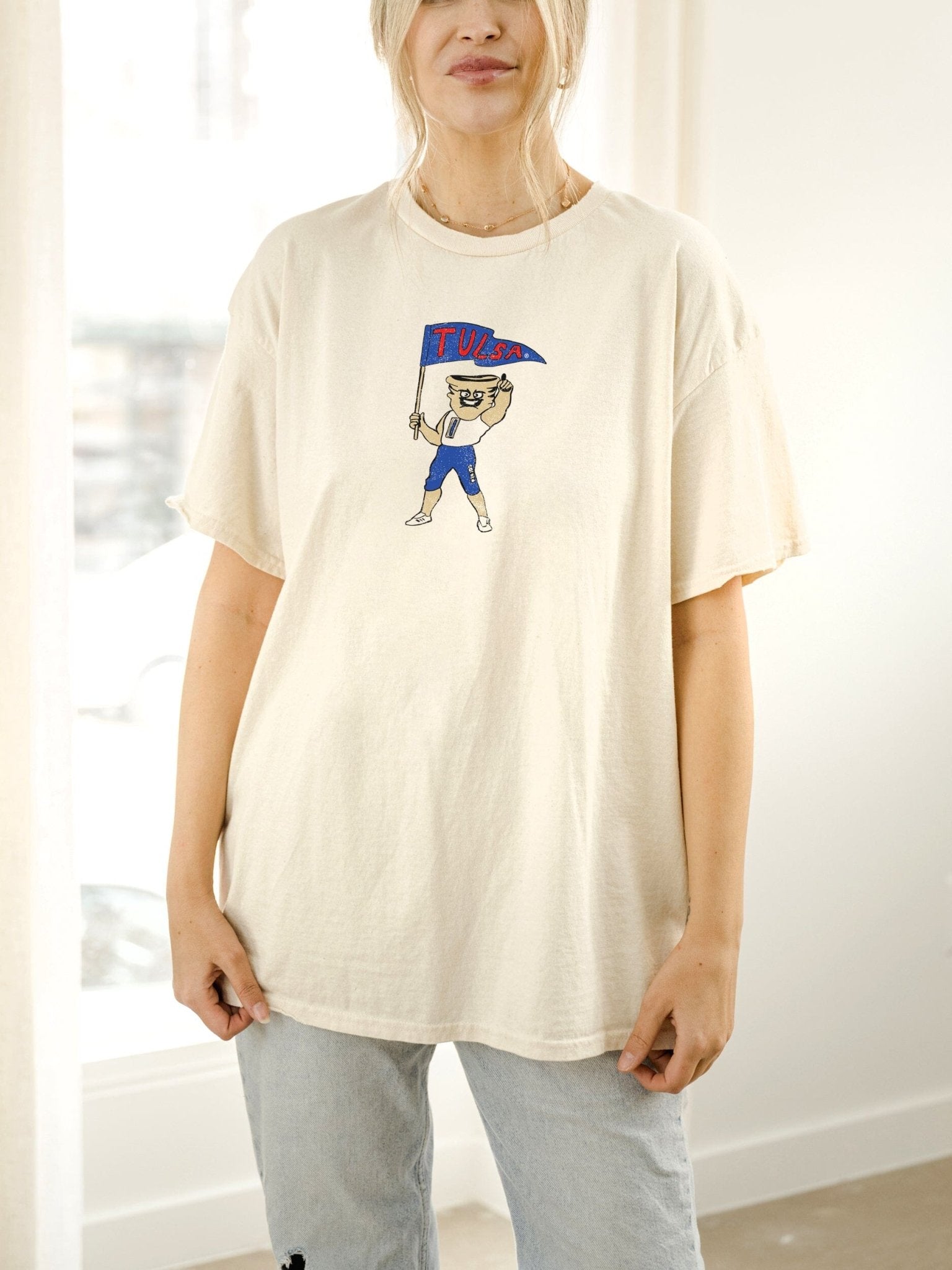 University of Tulsa Mascot Flag Off White Thrifted Tee