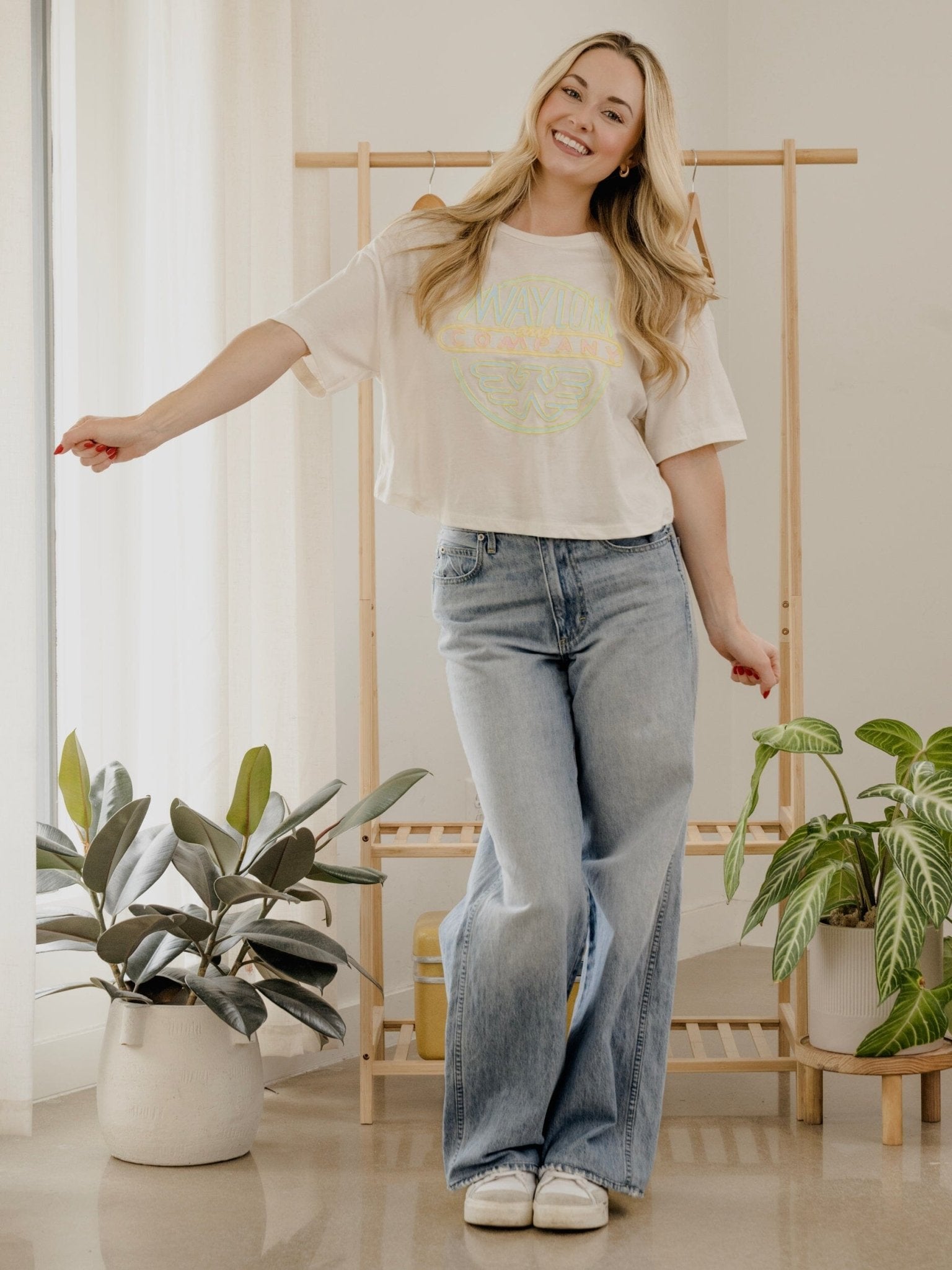 Waylon Jennings Logo Puff Ink Off White Cropped Tee