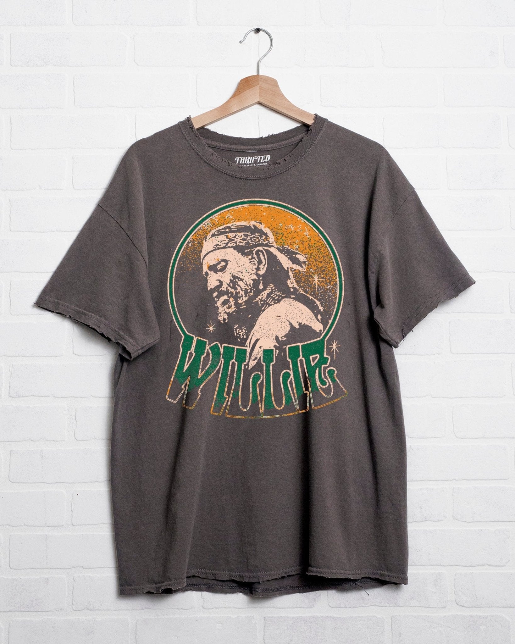 Willie Nelson Crystal Charcoal Thrifted Tee (FINAL SALE)