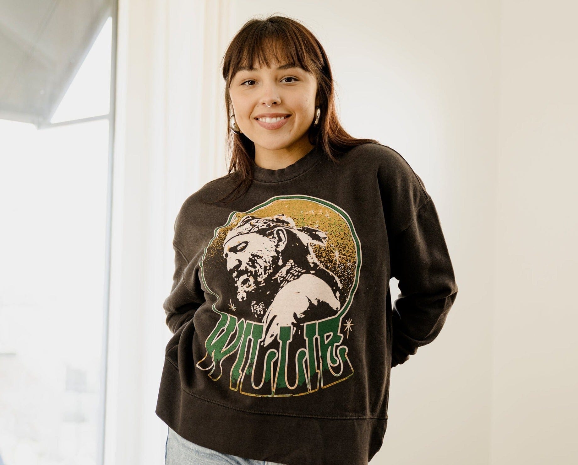 Willie Nelson Crystal Smoke Hi-Dive Oversized Crew Sweatshirt (FINAL SALE)